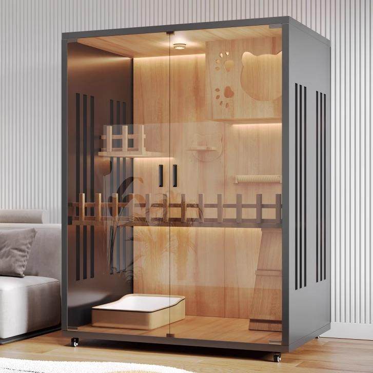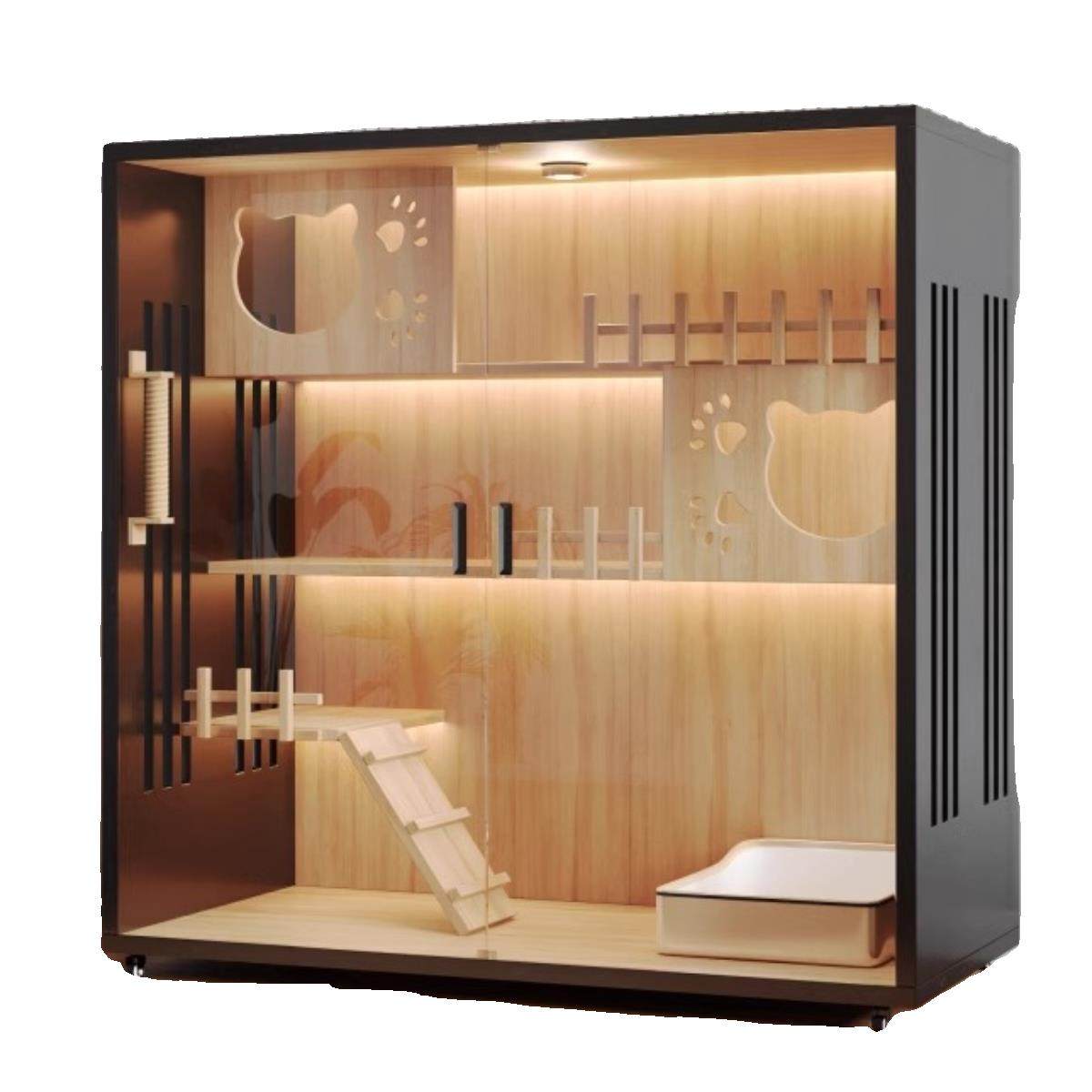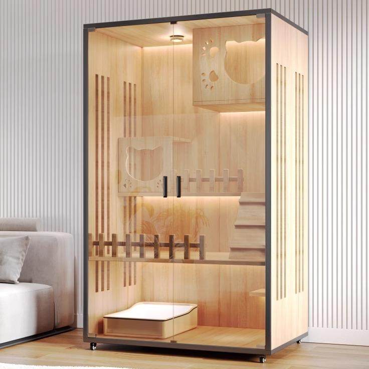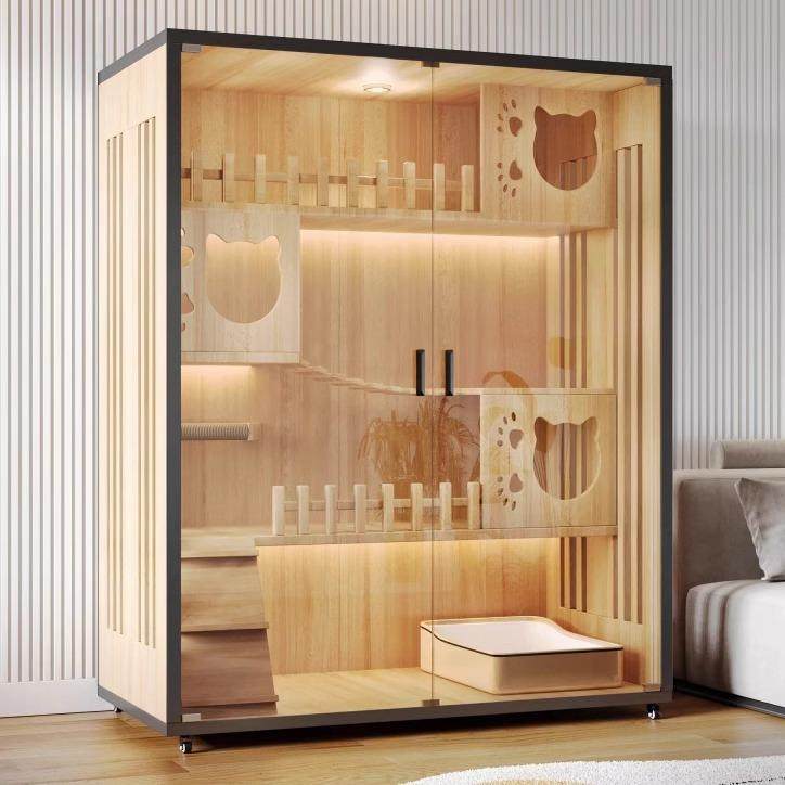 实木猫别墅家用全景豪华猫柜猫笼子空间猫屋爬架一体猫窝猫舍