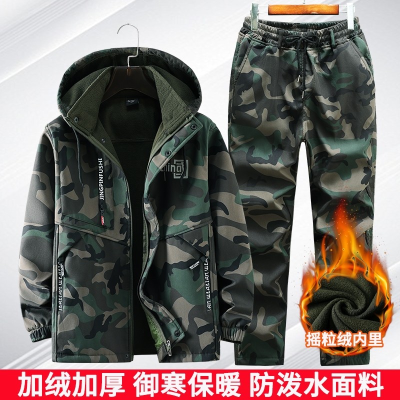 冬季工作服套装男加绒加厚迷彩服防风防水劳保服防寒保暖耐磨工装