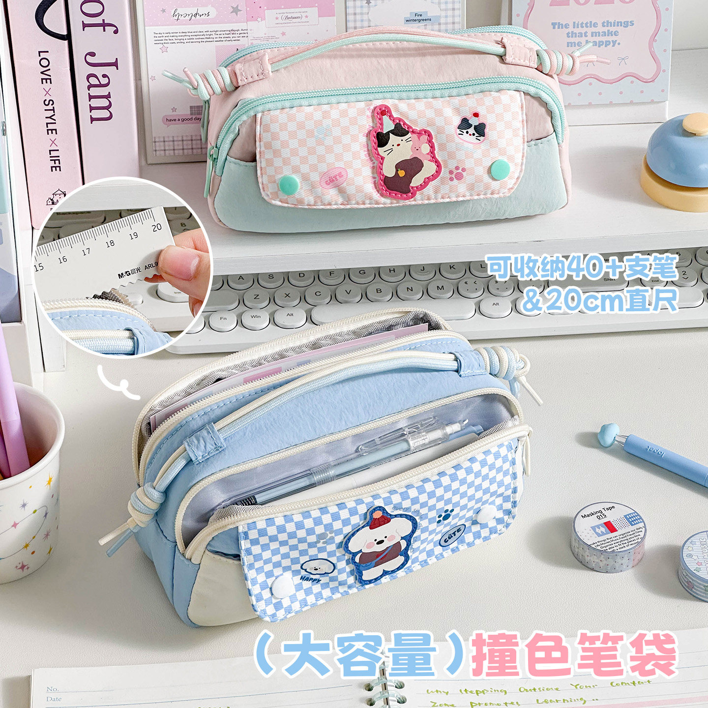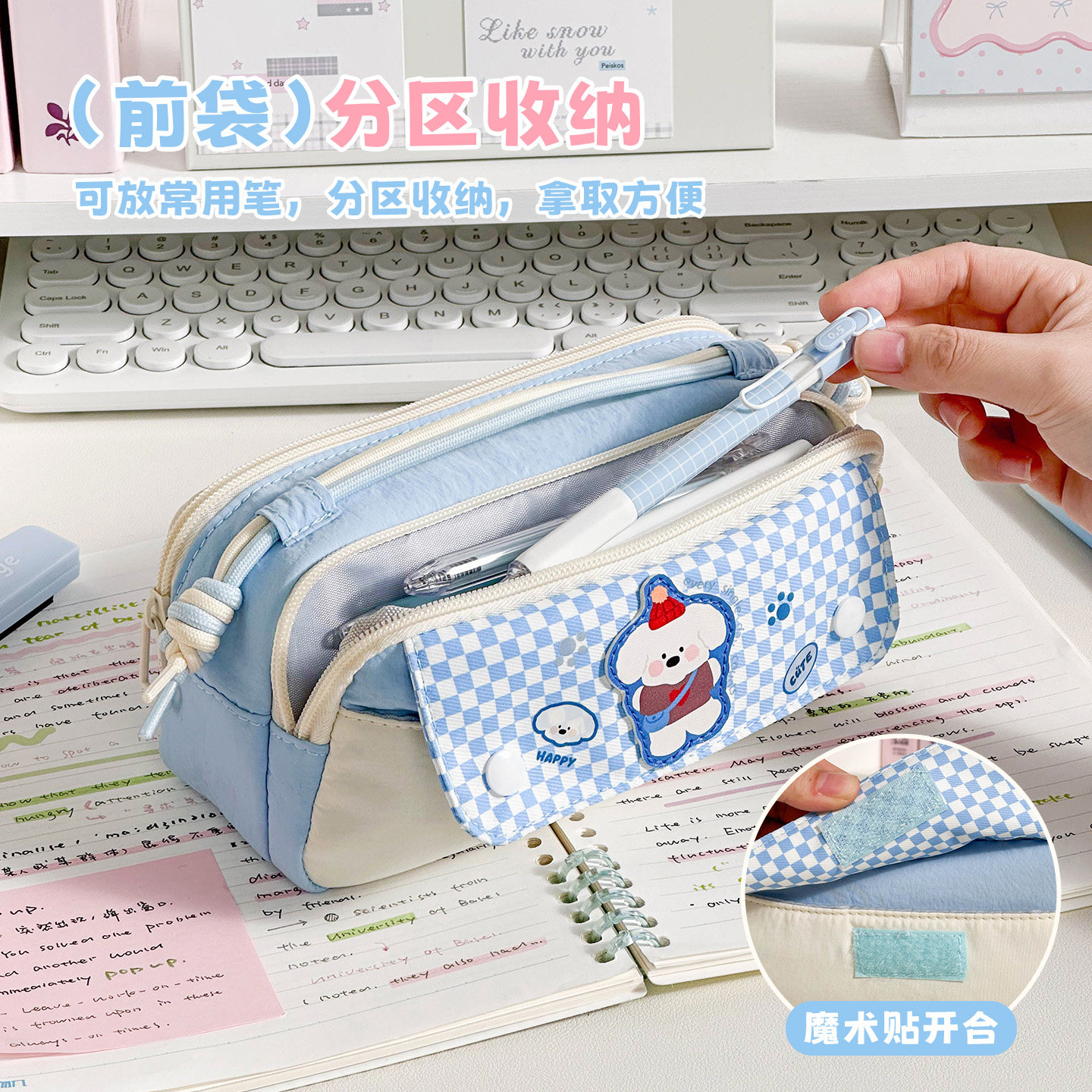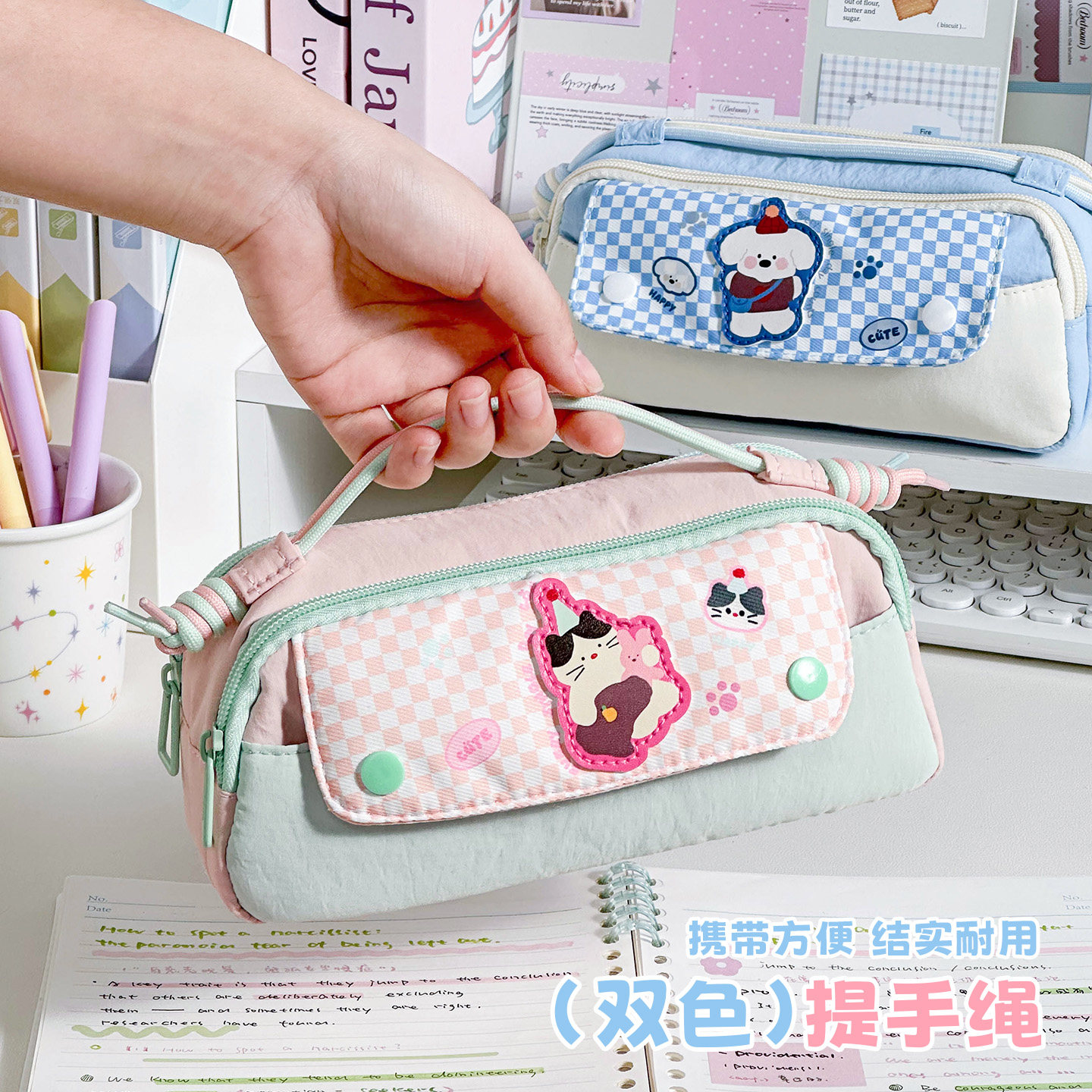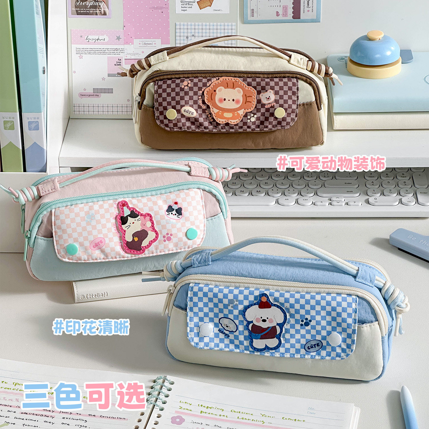 三年二班 软绵绵卡通动物手提笔袋小众不撞款2026新款便携日韩风高颜值ins风女孩男孩小学生大容量文具铅笔盒