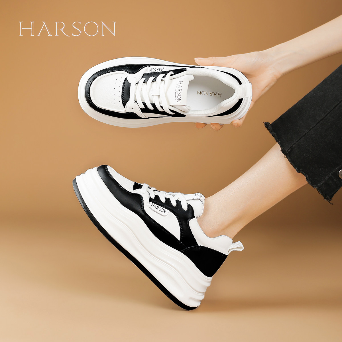 哈森厚底松糕小白鞋女鞋2025春秋季新款百搭增高小个子板鞋休闲鞋