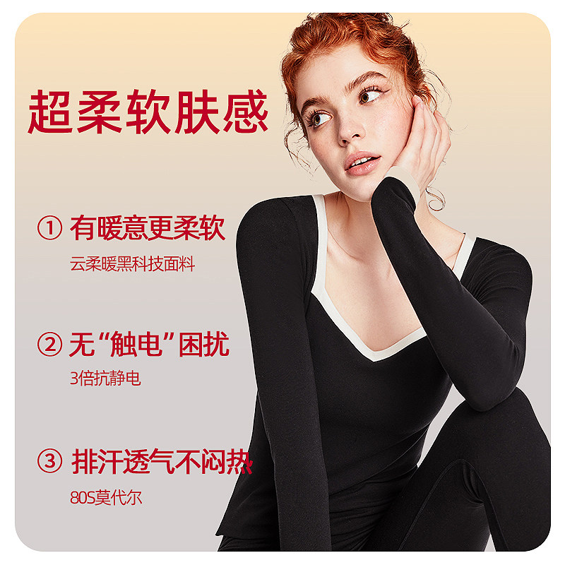 超柔软赫本领抗静电抗起球时髦保暖内衣套装