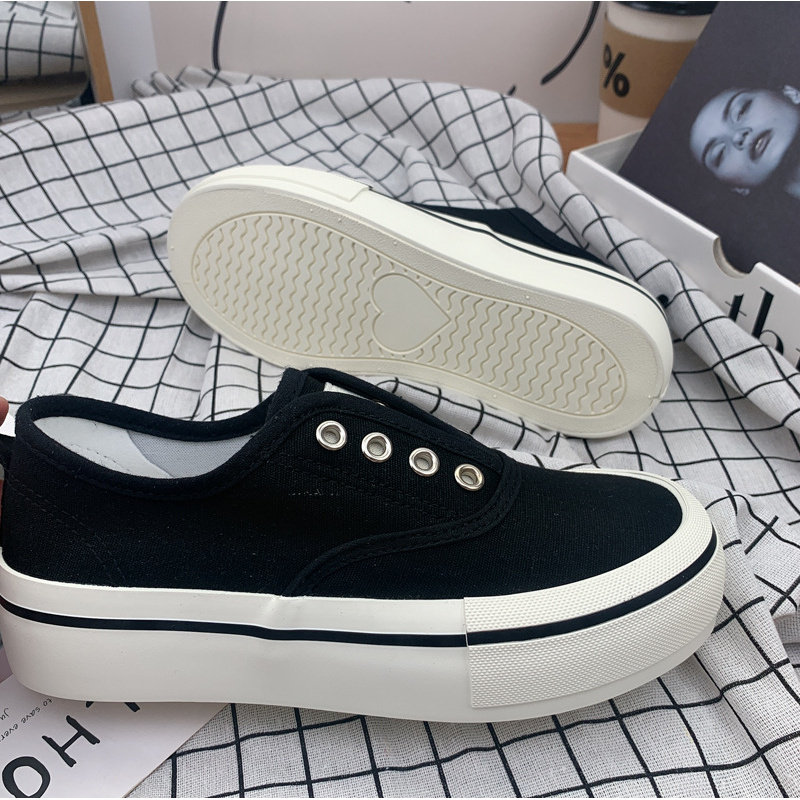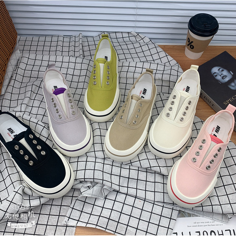 2023年芒果头糖果色懒人一脚蹬帆布鞋女港风夏季薄款厚底小白鞋