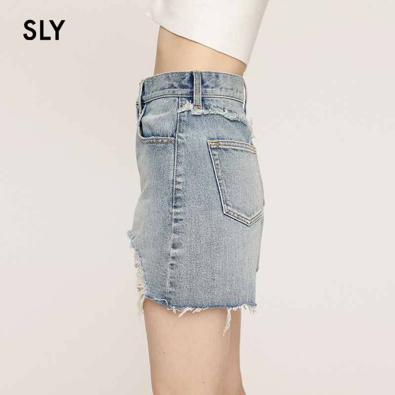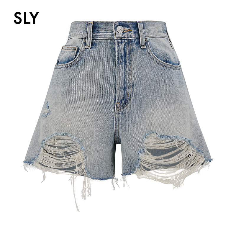 SLY 夏季新品街头颓废风破洞烂边高腰牛仔短裤038HSL11-2910