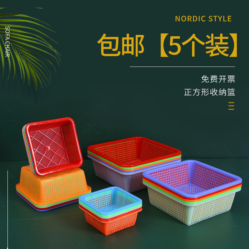 塑料小篮子正方形加高收纳篮四形方配药小吃选菜盆厨房收纳框箩筐