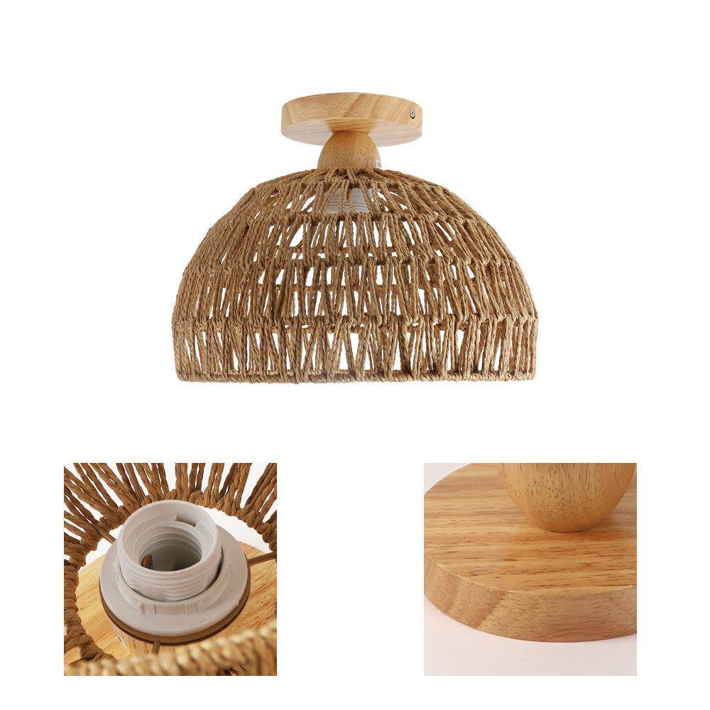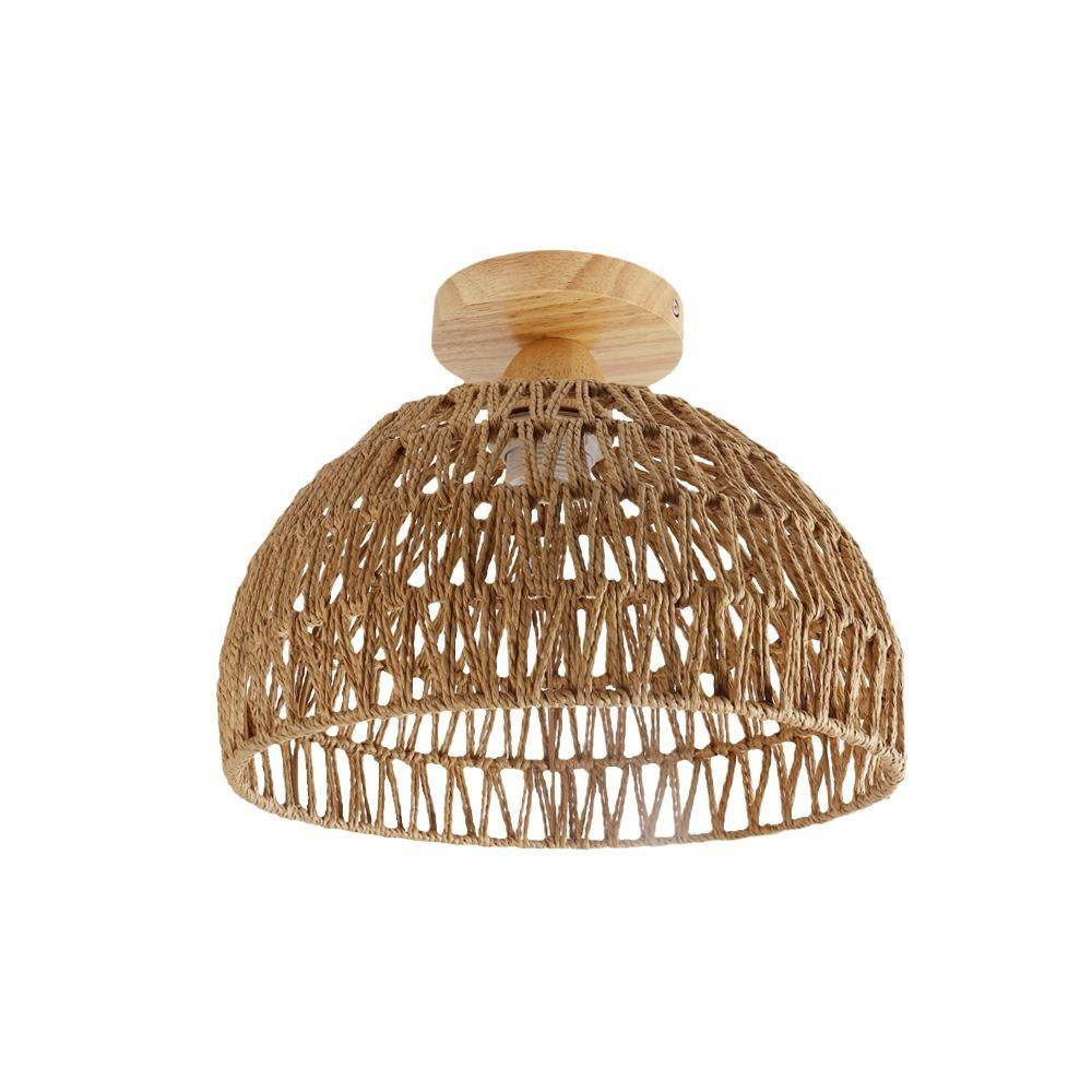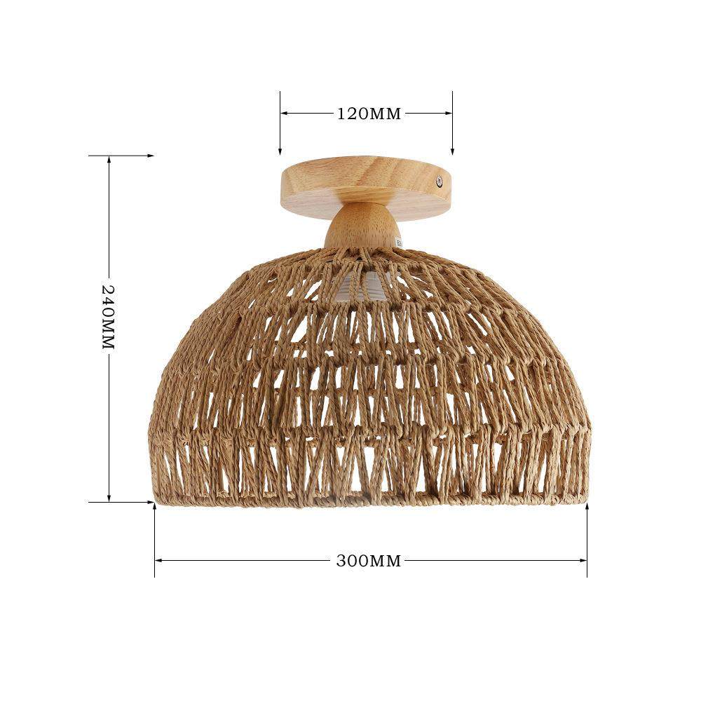 跨境半圆笼子亚马逊乡村复古吸顶灯工业风卧室美式纸藤编织吸顶灯