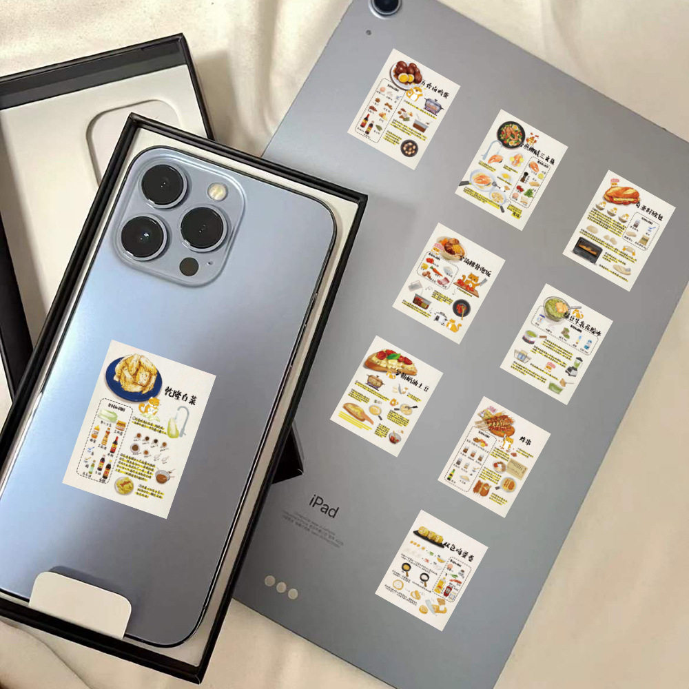 63张手绘菜谱小贴纸 家常菜周黑鸭甜品部队火锅烘焙美食制作贴画