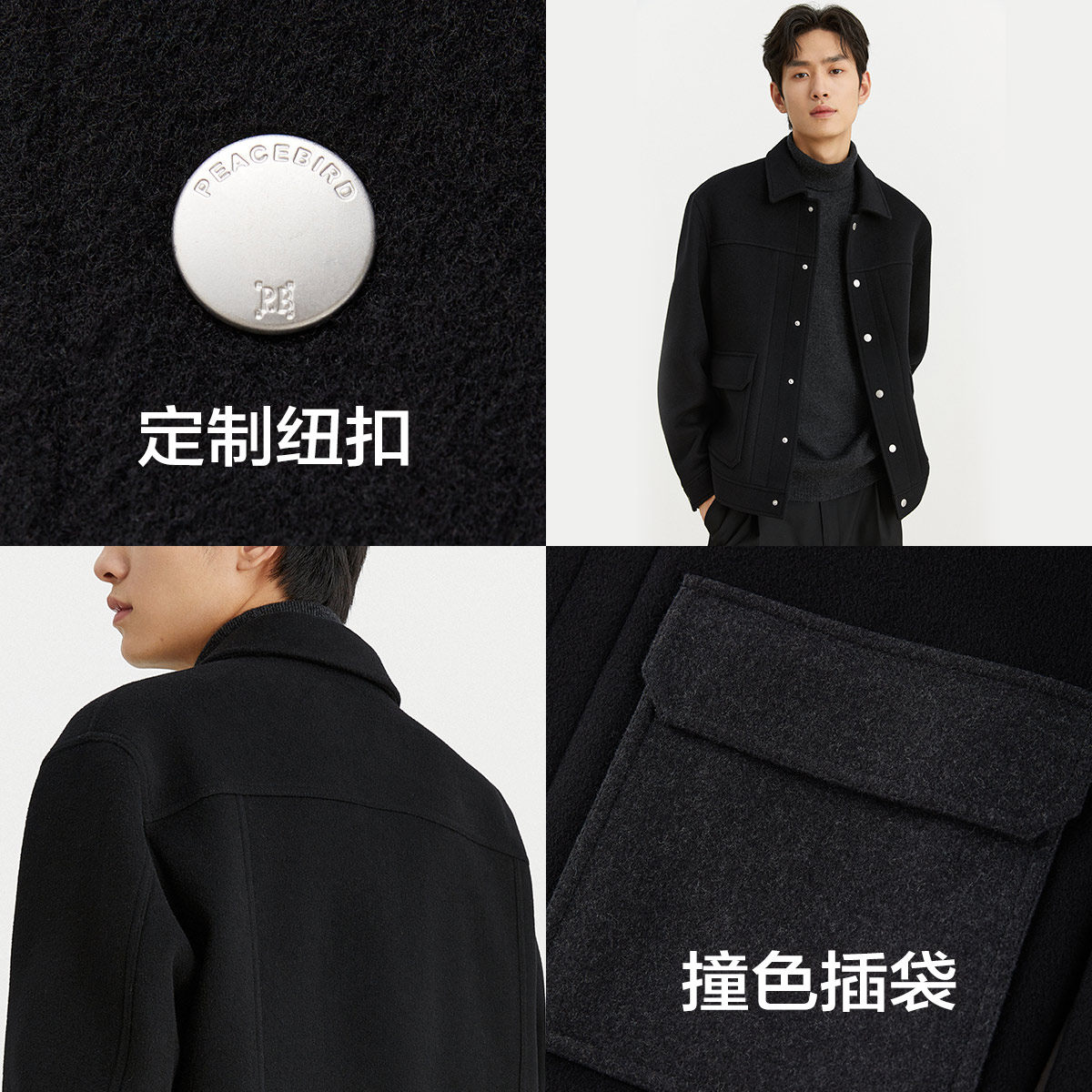 太平鸟男装毛呢夹克冬新款撞色短款茄克品质绵羊毛外套青年