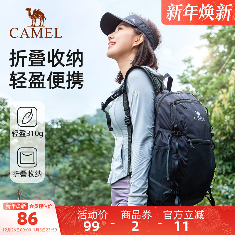 骆驼户外登山包轻量化双肩包运动休闲背包可折叠皮肤徒步旅行包