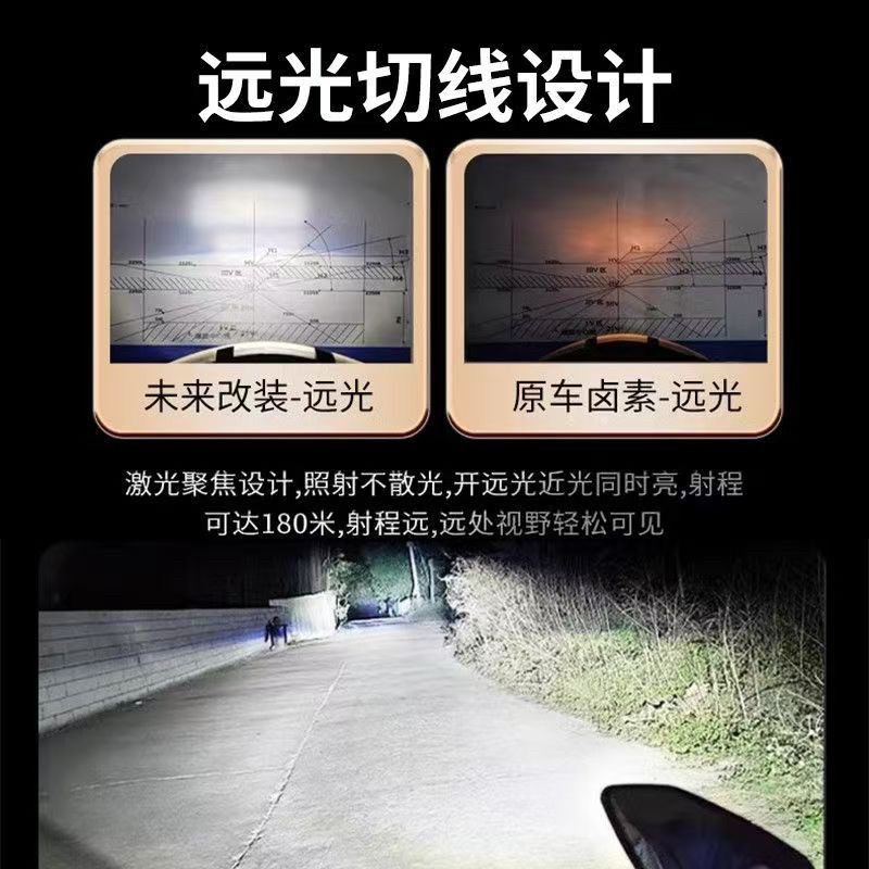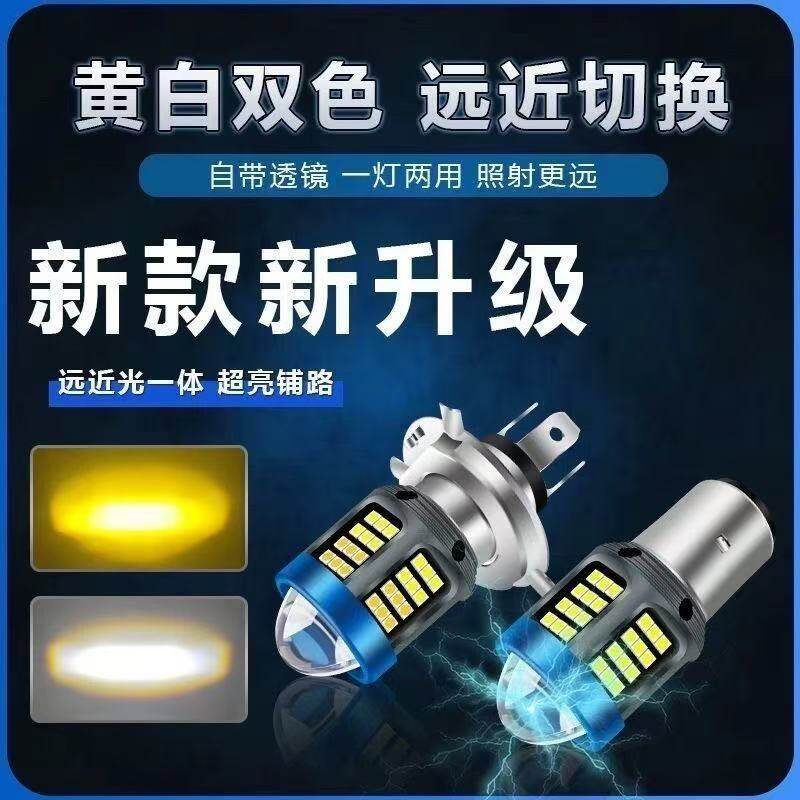 摩托车灯强光前大灯双爪三爪led灯泡12v激光灯12-80V通用款360度