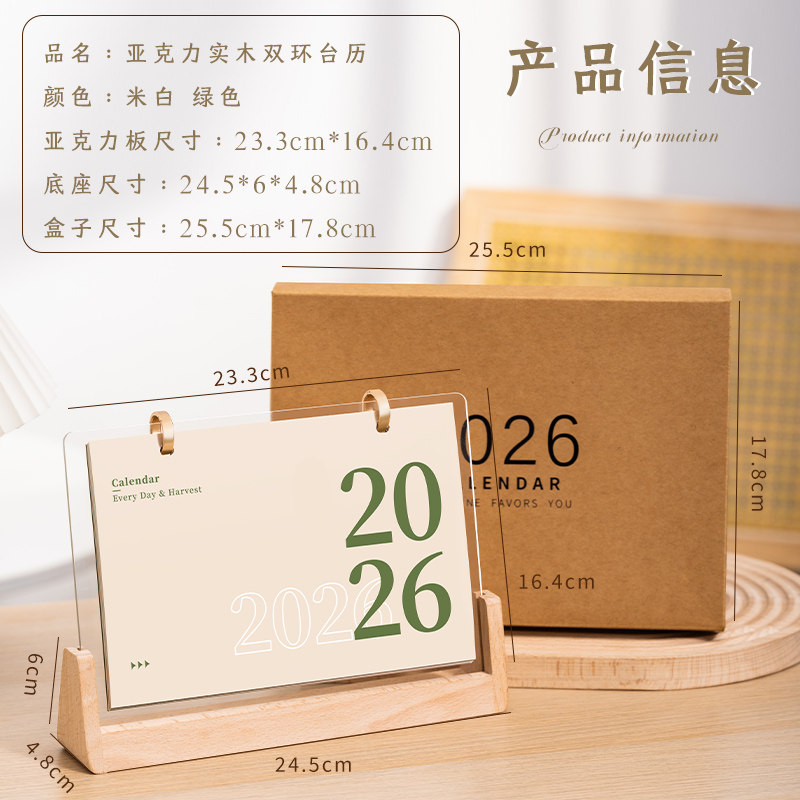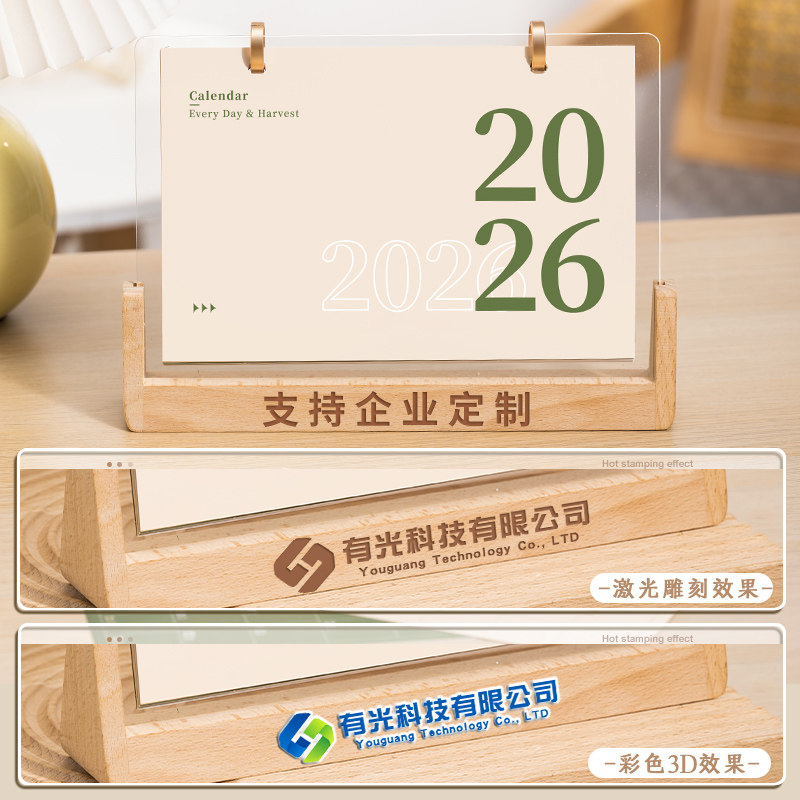 实木台历2026新款双圈可定制简约创意亚克力木质日历桌面小摆件月历定做企业礼品公司广告logo商务新年礼物