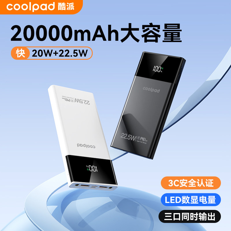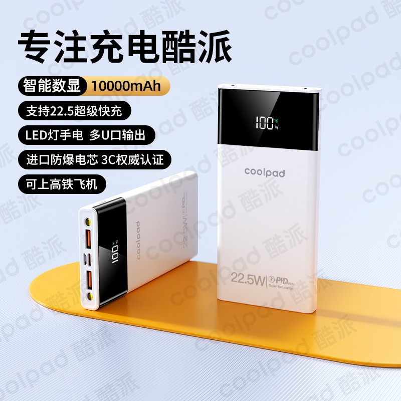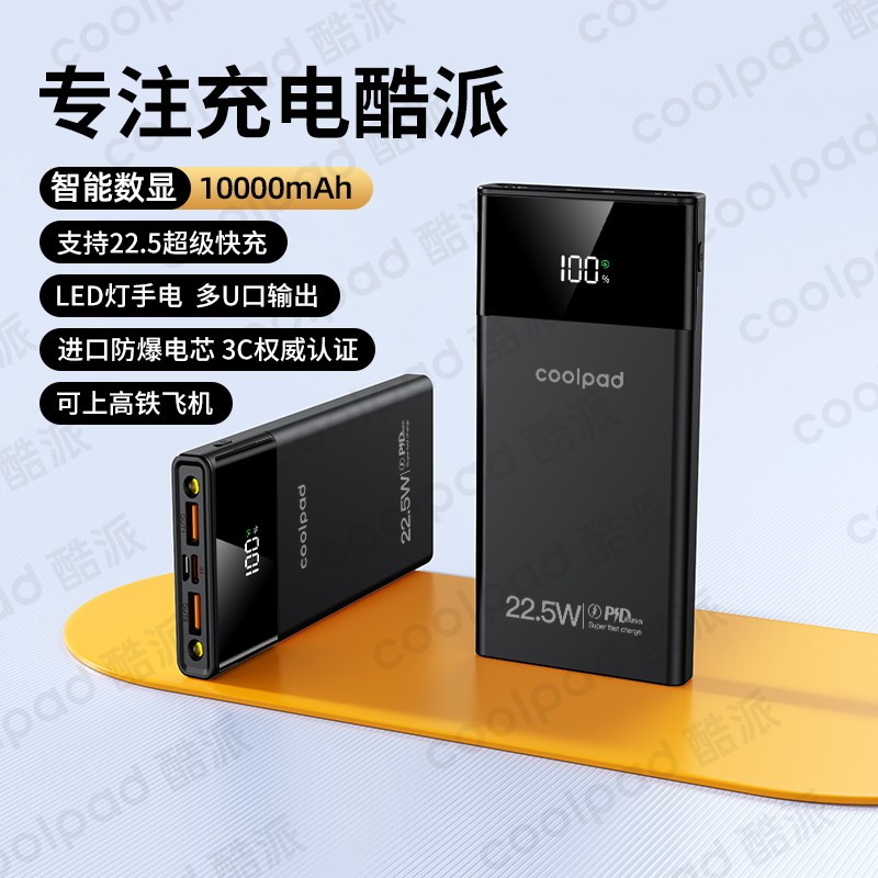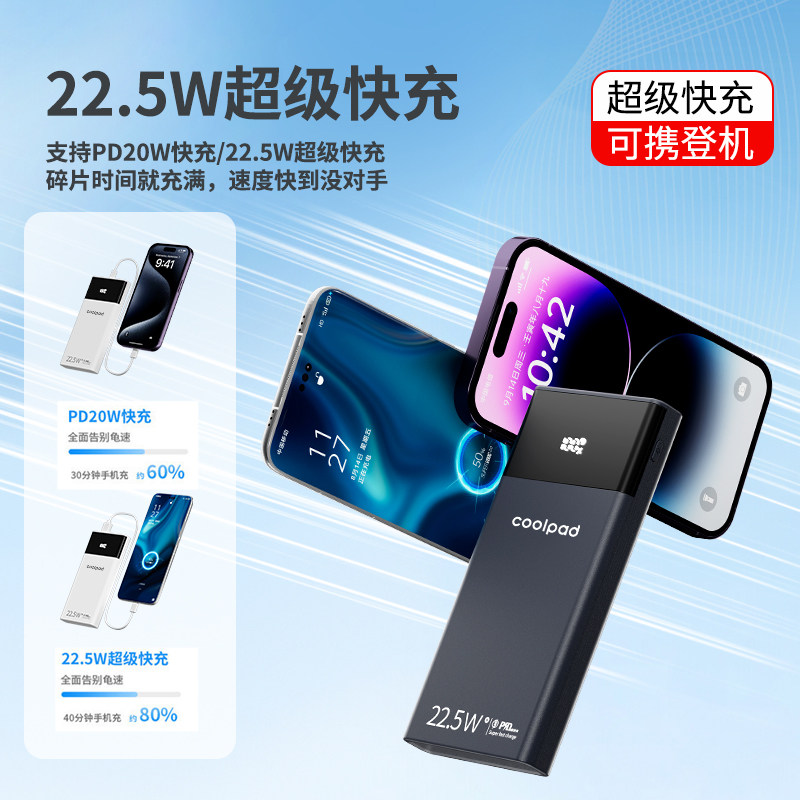 【新国标3C认证】酷派大容量线充电宝新款10000毫安时兼容22.5W超级快充1万电超薄小巧便携移动电源可上飞机