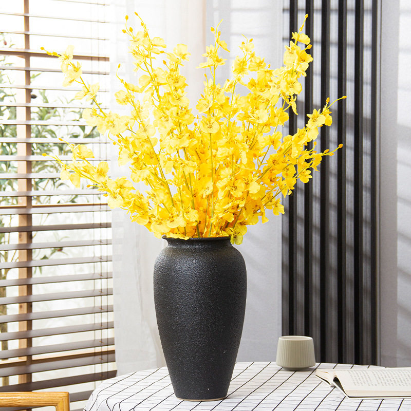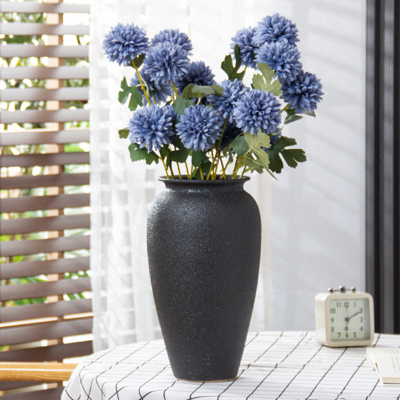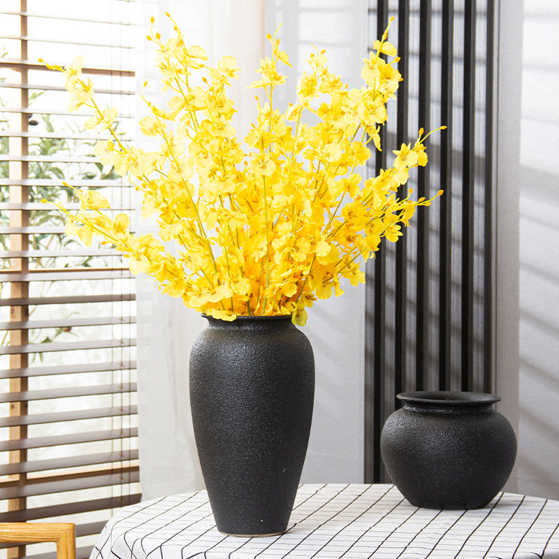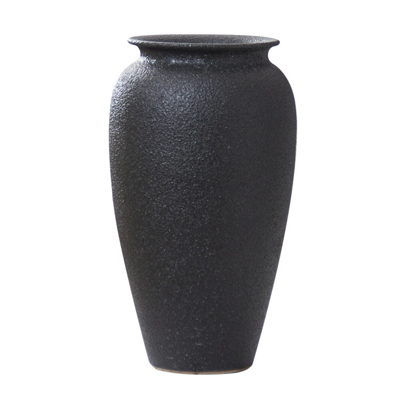 景德镇黑色磨砂插干花现代简约禅意复古新中式台面客厅大陶瓷花瓶