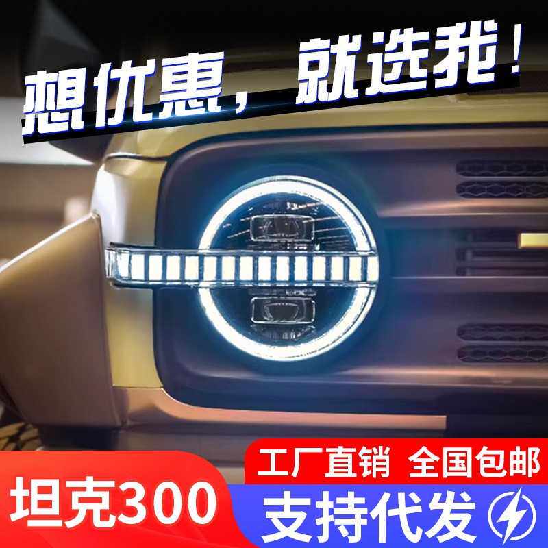 适用于坦克300大灯总成改装烈马款LED透镜跑马日行灯流水转向灯