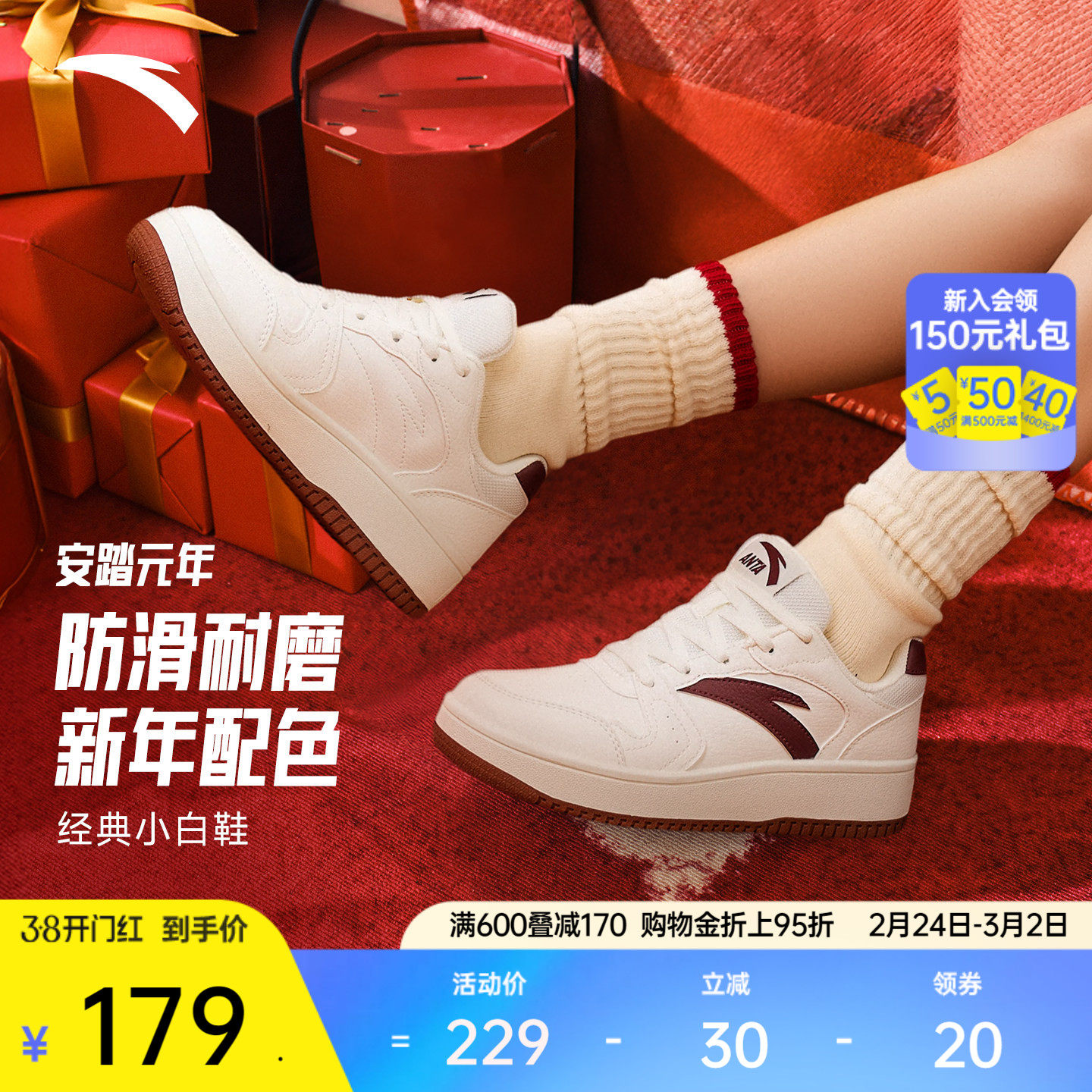 安踏轻松小白鞋丨板鞋女潮流冬季学生经典百搭运动鞋子轻便休闲鞋