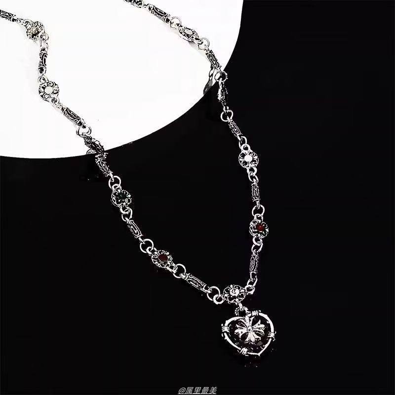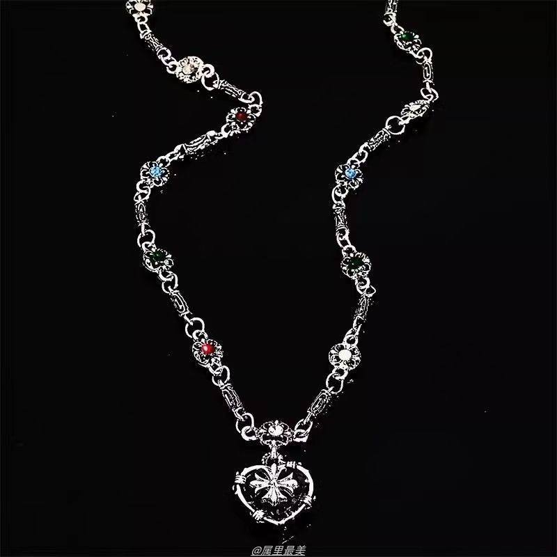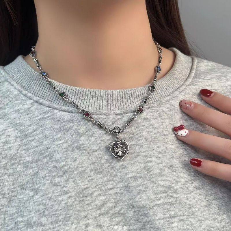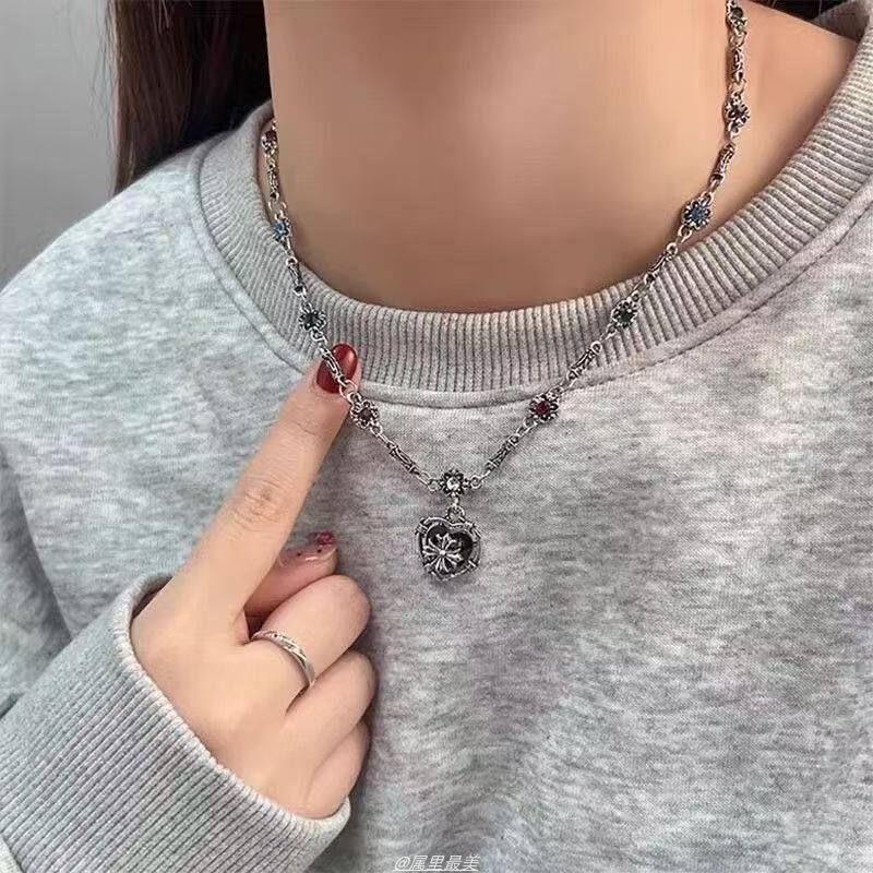vintage高级感爱心克罗锁骨链小众设计秋冬毛衣链长款甜酷风项链