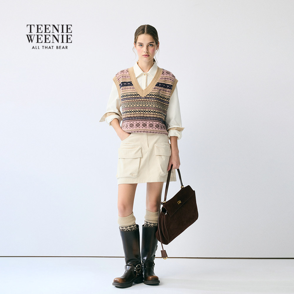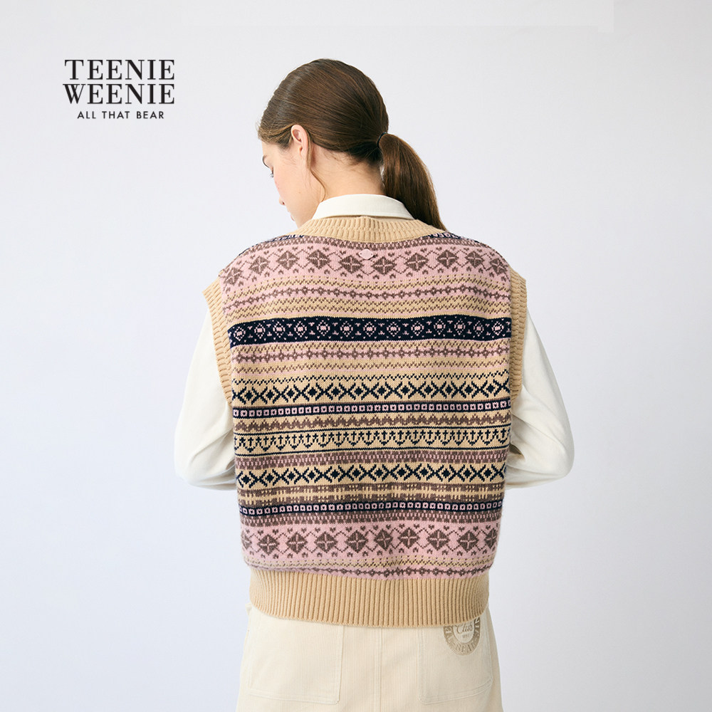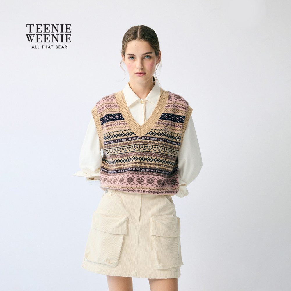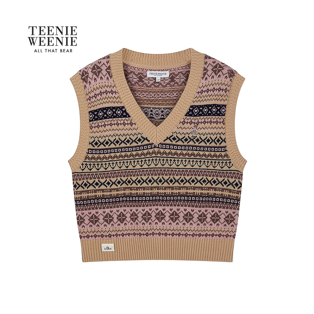 TeenieWeenie小熊女装毛衣2025冬新款时髦费尔岛提花V领针织背心