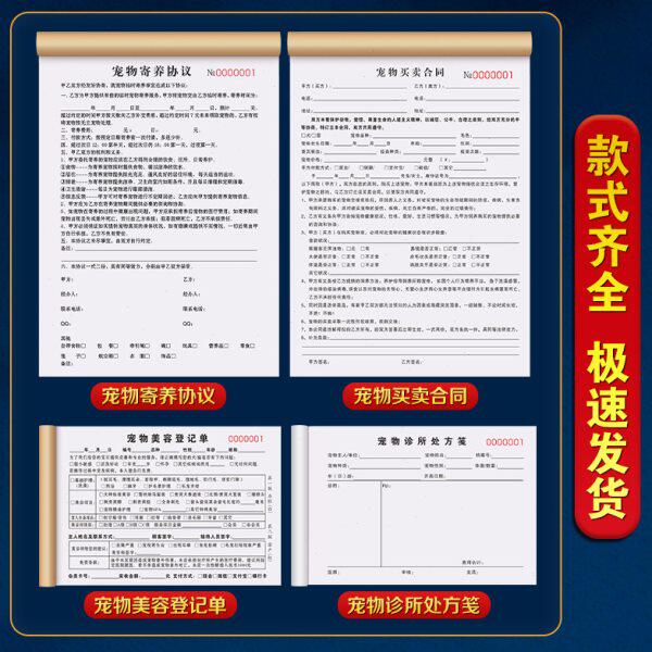 宠物店寄养协议书领养买卖合同出售合约记录本美容接待服务记账本