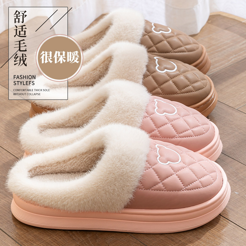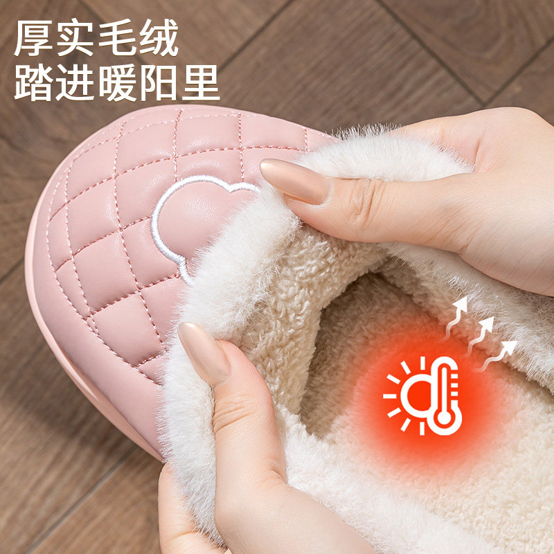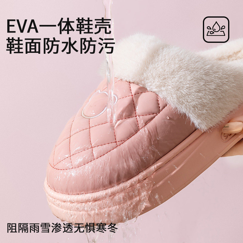 防水棉拖鞋女士2025新款秋冬季室内居家加绒保暖厚底防滑毛绒棉拖