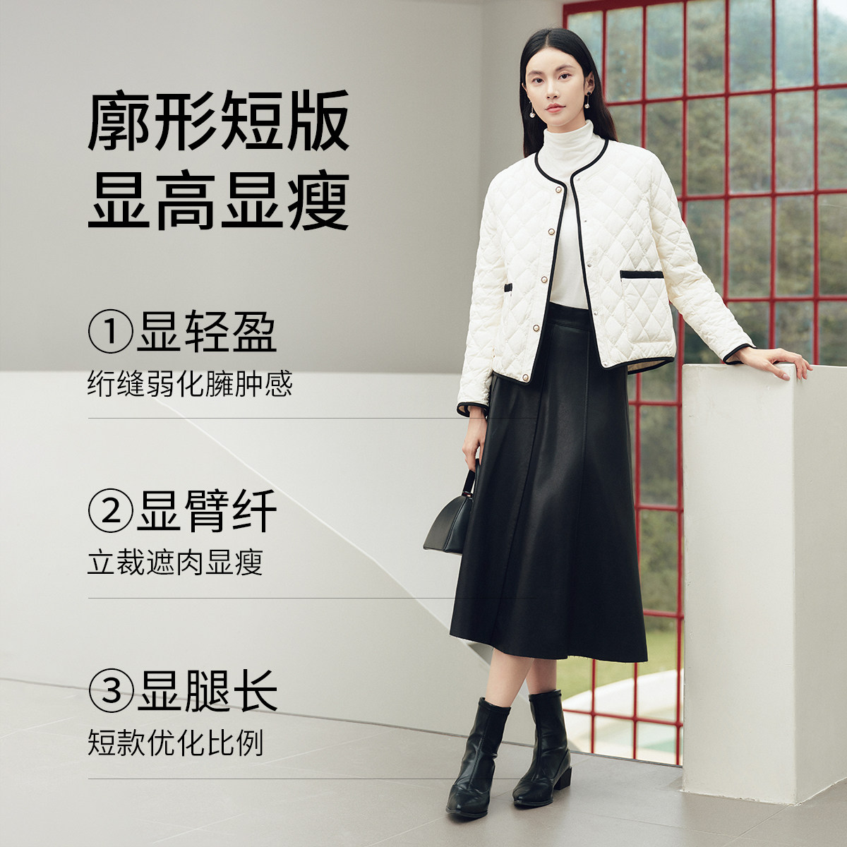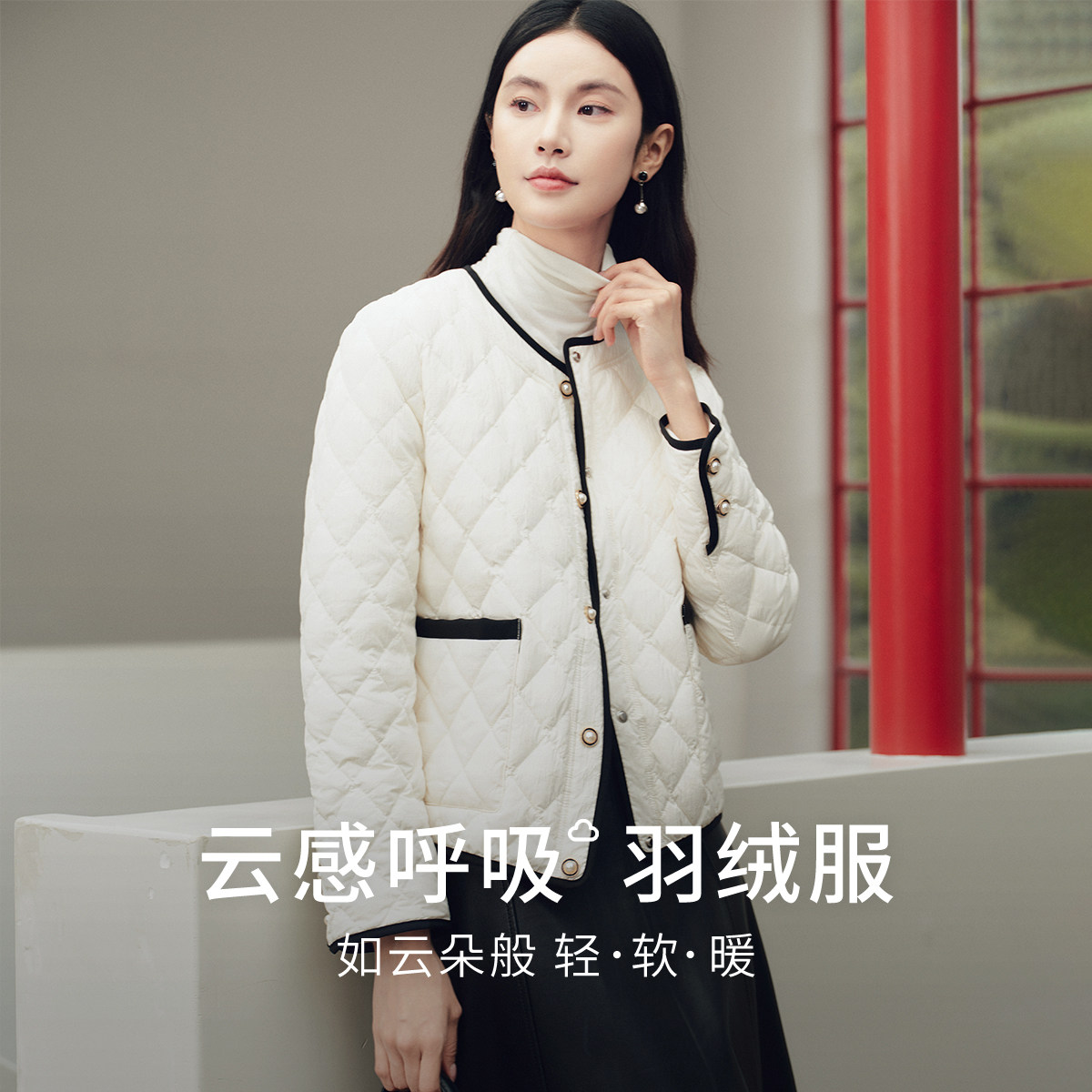 FINITY菲妮迪小香风短外套2025冬季新款保暖90白鹅绒羽绒服女装