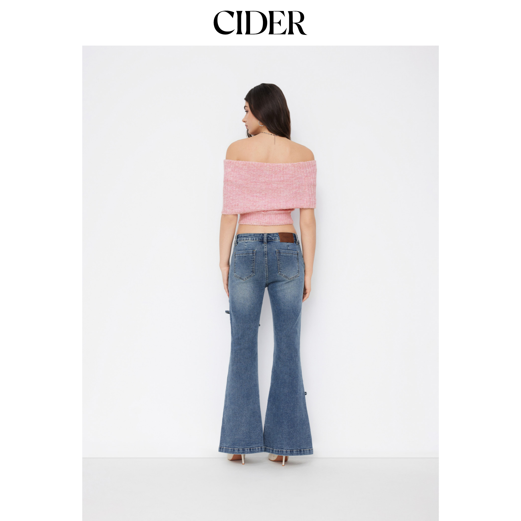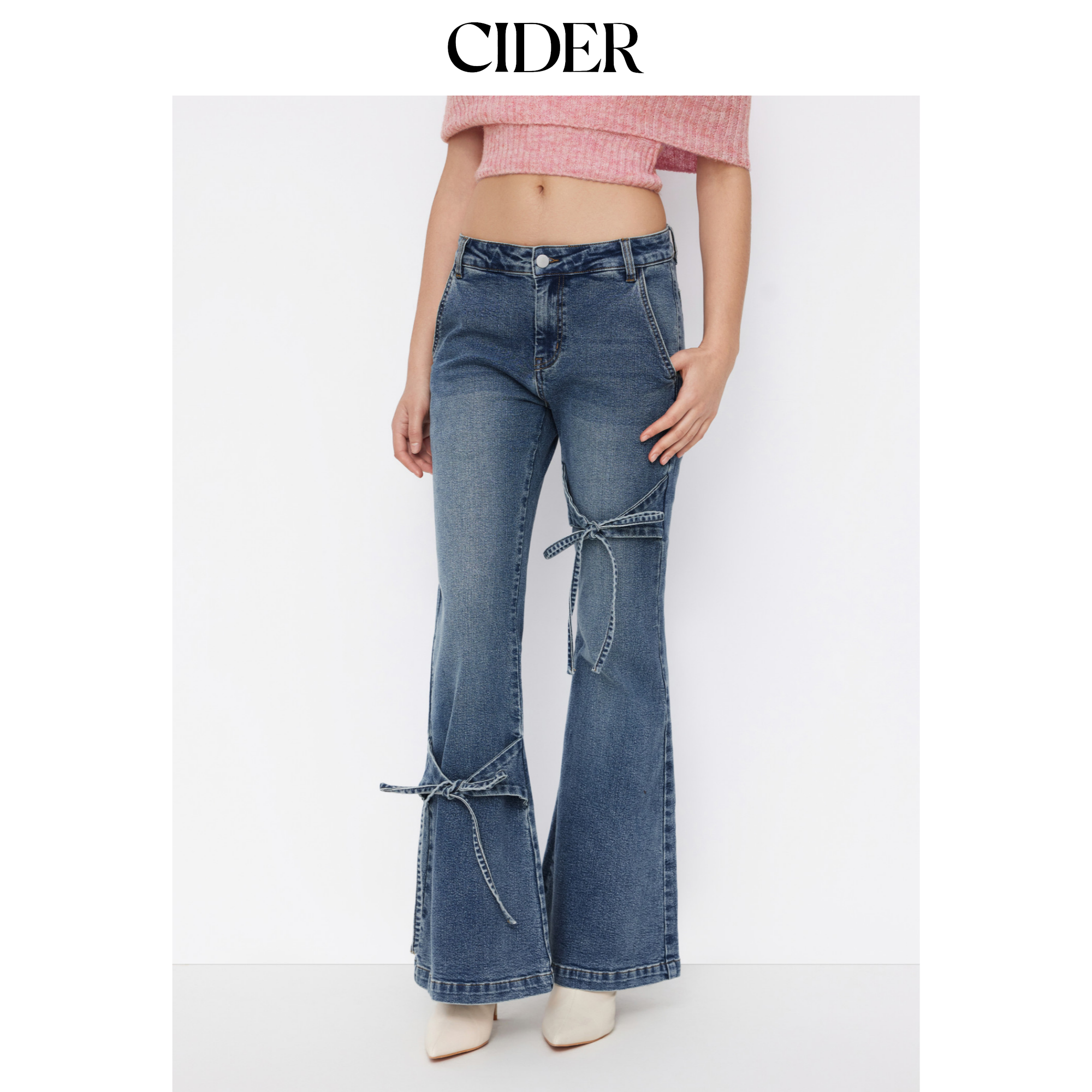 CIDERCider弹力低腰蝴蝶结阔腿牛仔裤114952164