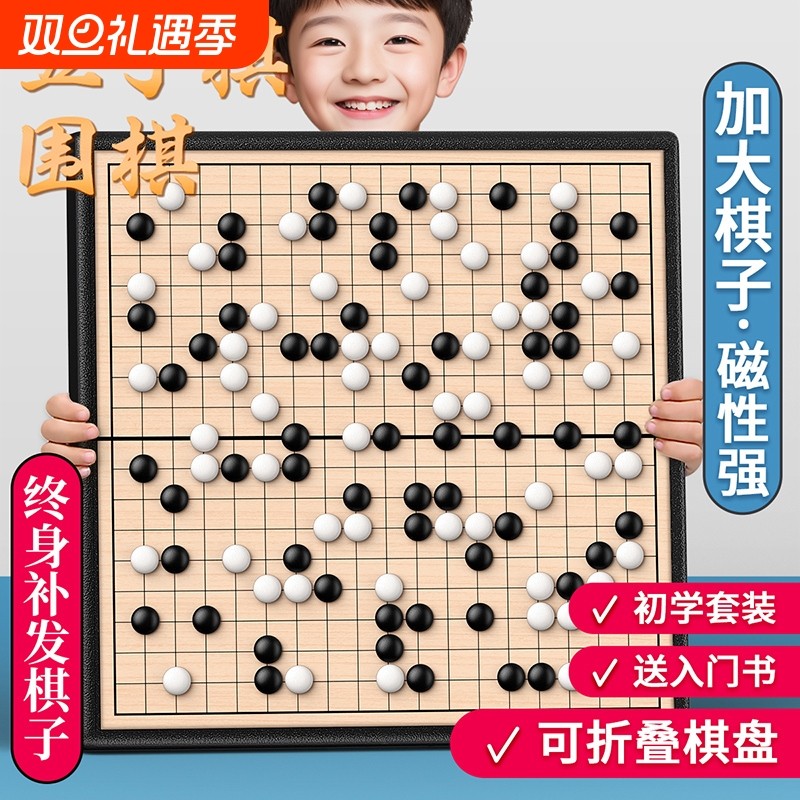 磁性五子棋围棋棋盘套装儿童版带磁性初学标准磁吸小学生成人大号