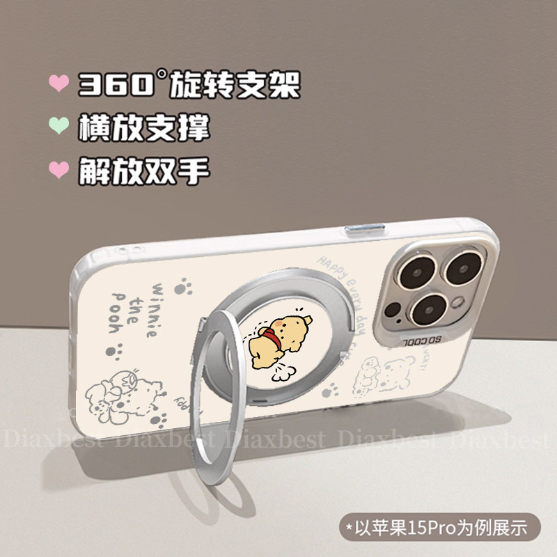 维尼小熊适用苹果16promax手机壳iphone17华为mate80/70荣耀400小米15新款nova14支架p80一加ace3彩银reno14