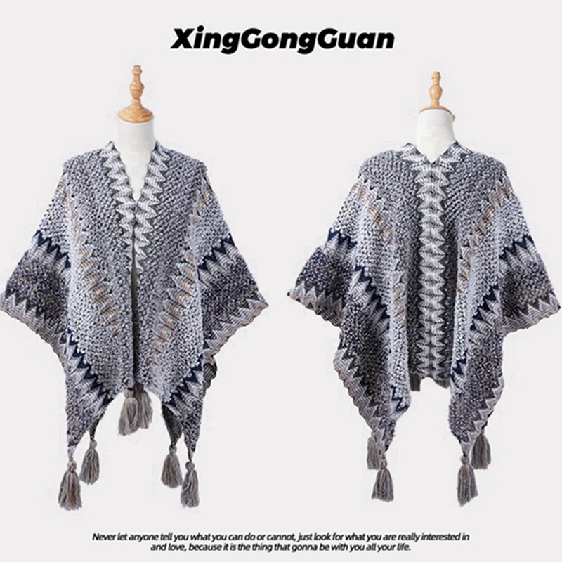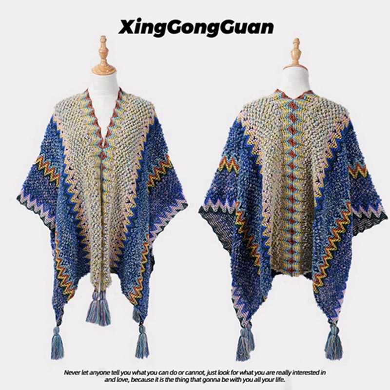 云南丽江民族风蓝色旅游披肩女外搭氛围感时尚披风斗篷针织围巾女