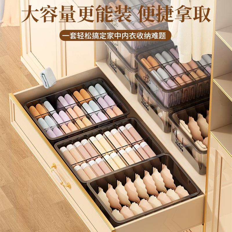 透明内裤袜子收纳盒带盖衣柜家用卧室多格翻盖衣物收纳箱宿舍家用