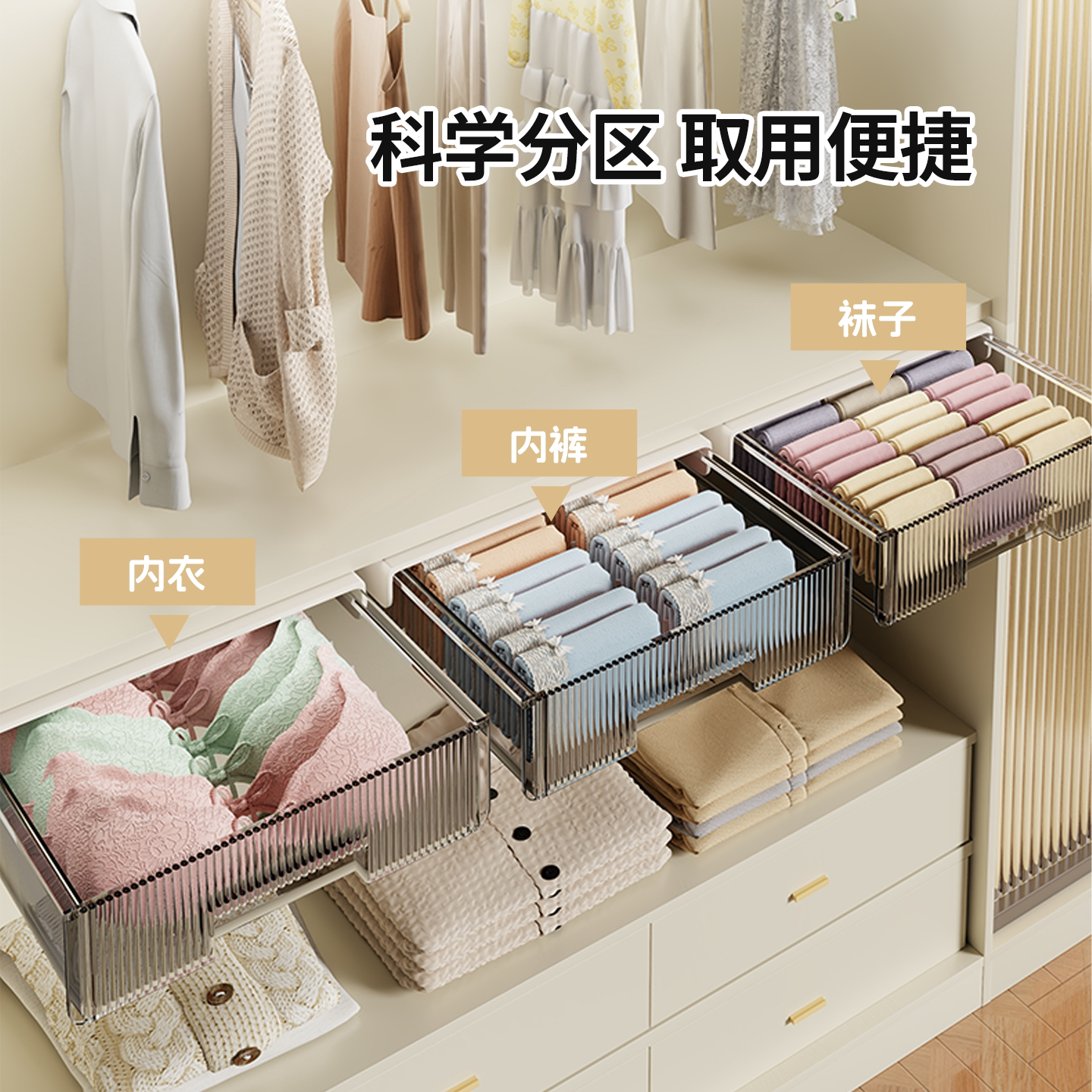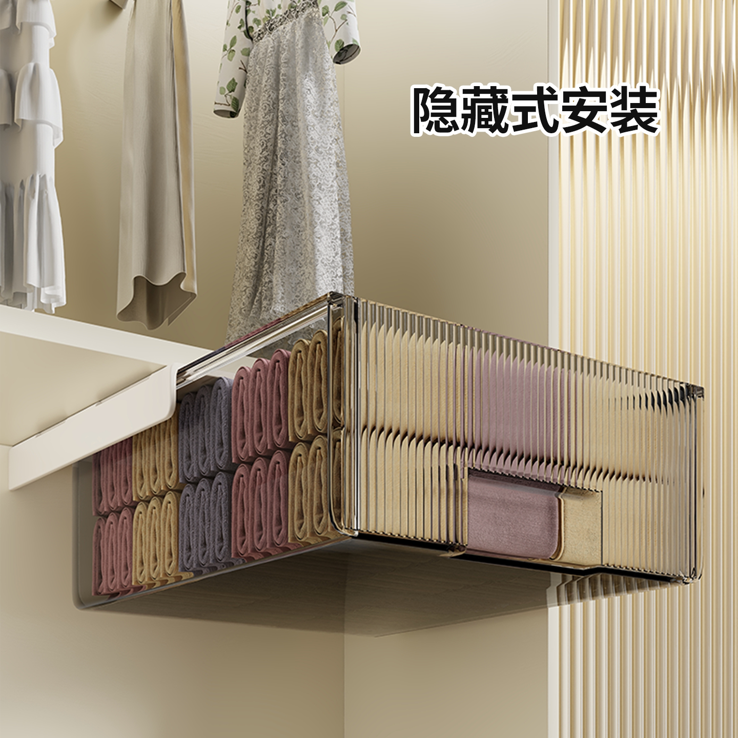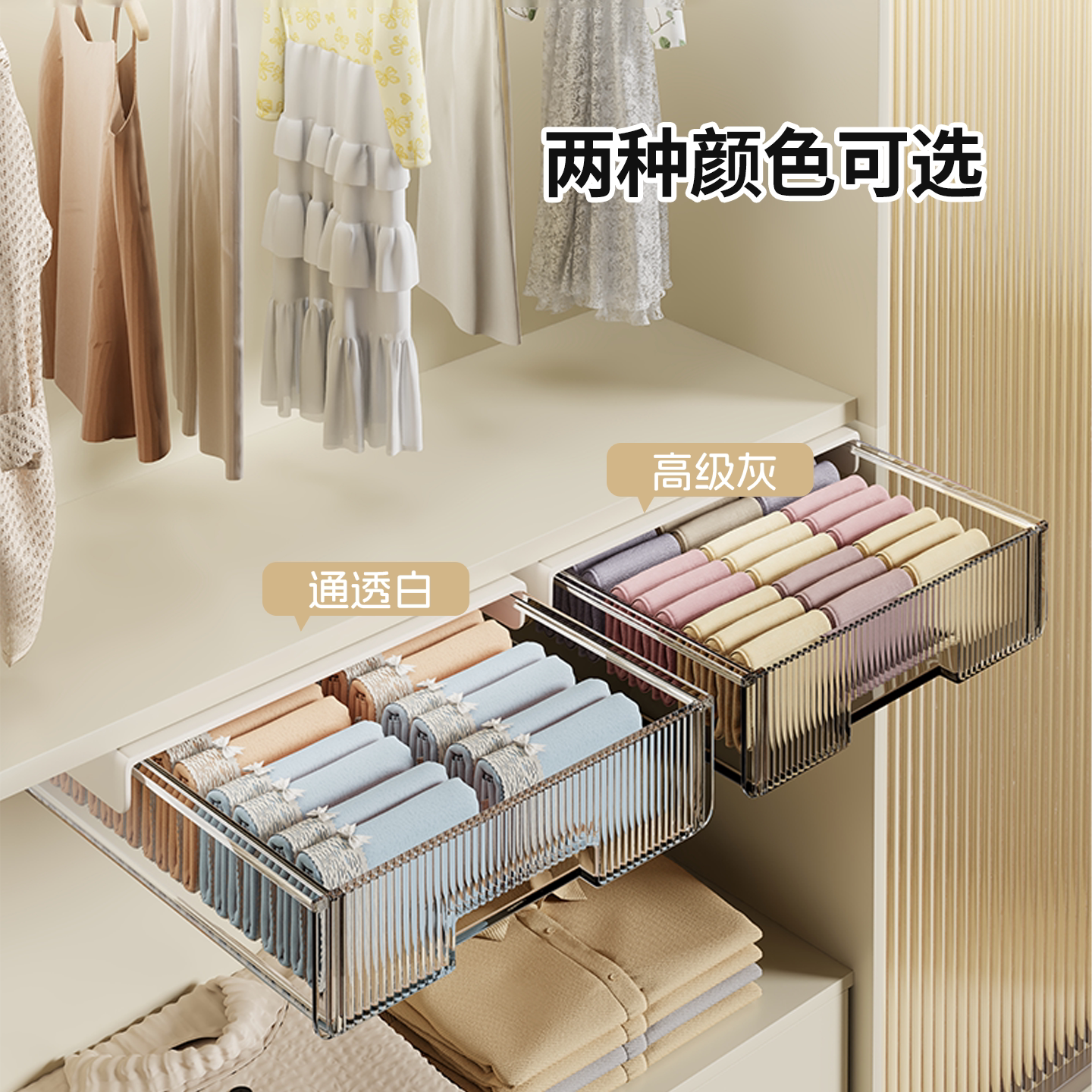 衣柜抽拉隔板柜子悬挂内衣袜子收纳盒卧室柜内隐藏免打孔储物神器