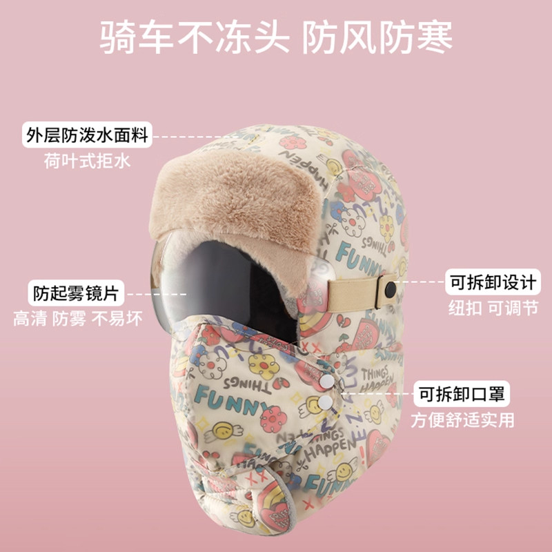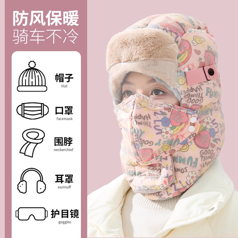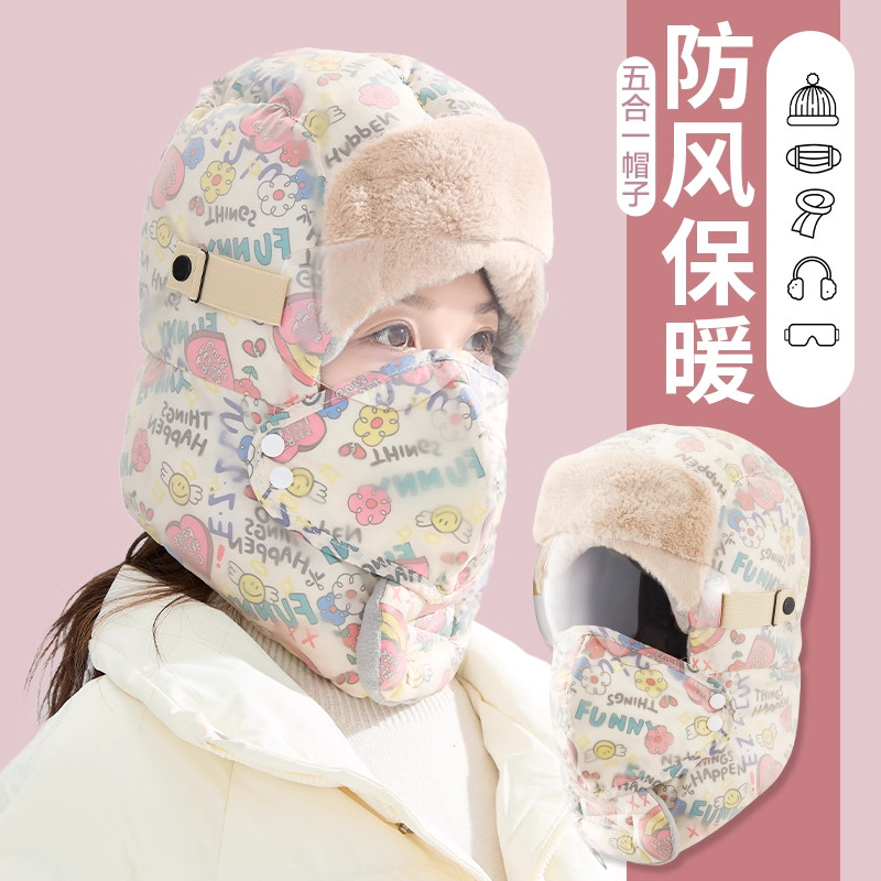 帽子雷锋帽女东北冬季加绒加厚防风面罩保暖电动车骑行男棉帽骑车