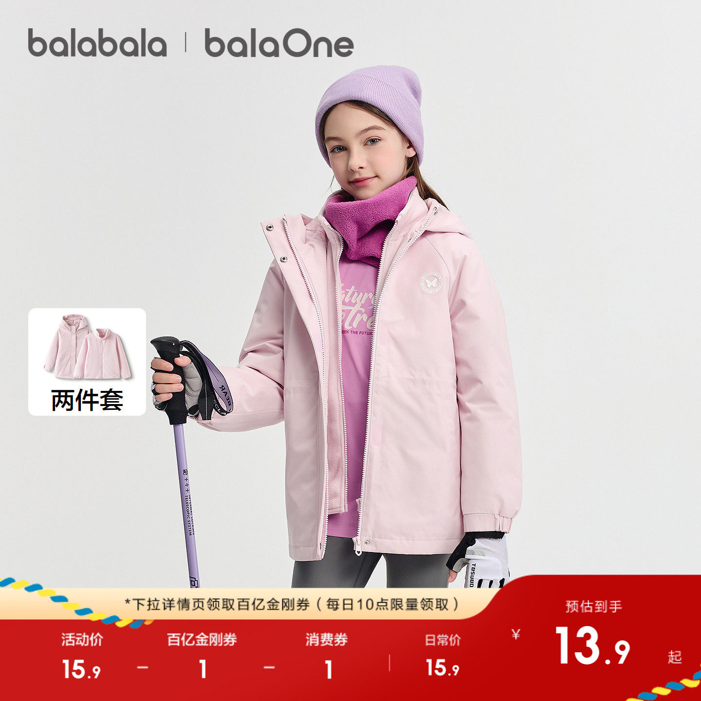 巴拉巴拉童装儿童棉服女童外套两件套新款2026春秋装防泼水保暖潮