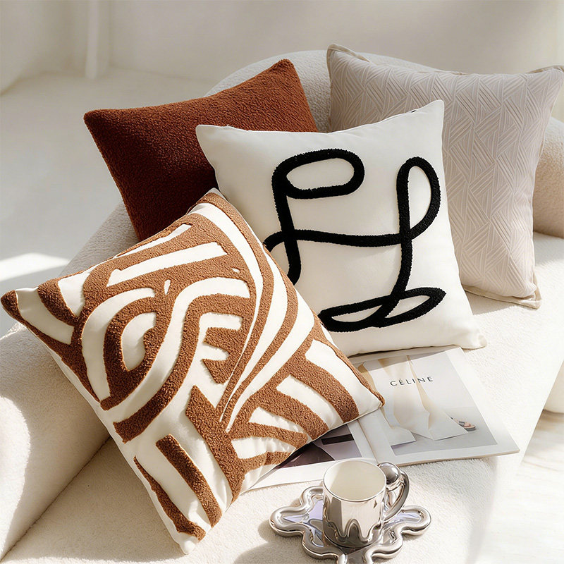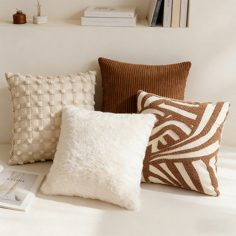 2025新款雪尼尔咖棕抱枕套方形大号靠垫床头靠枕腰靠沙发靠背定制