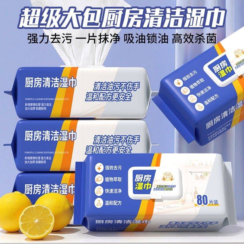 厨房湿巾去油去污家用油烟机清洁强力去油污湿纸巾加大加厚抹布