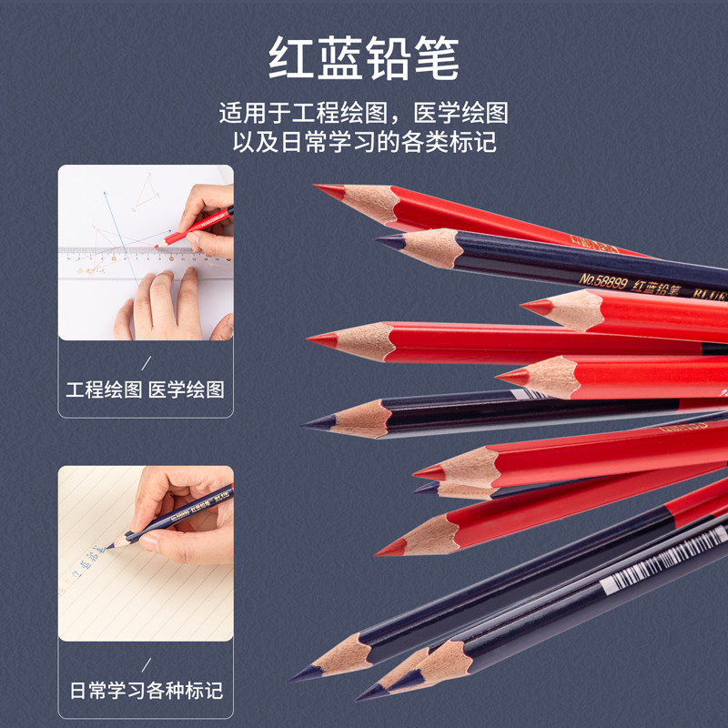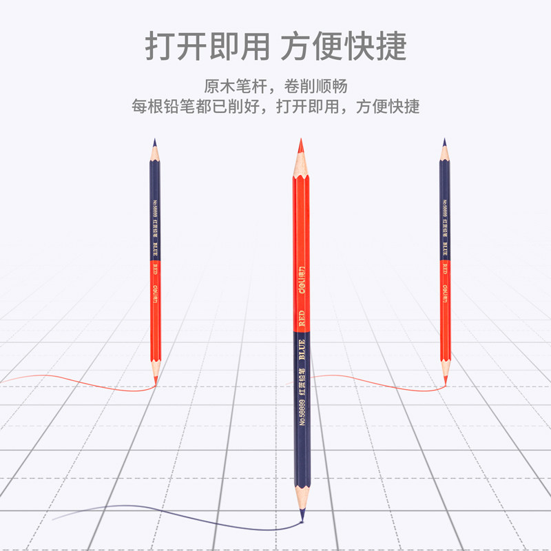 得力58899红蓝双色铅笔双头医学六角笔杆开发木工医生护士绘图用