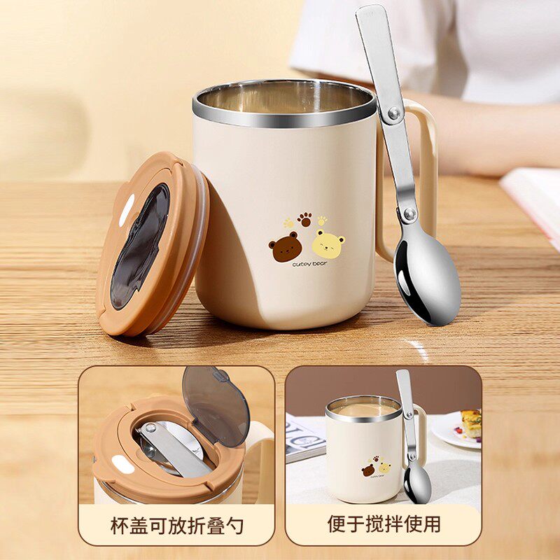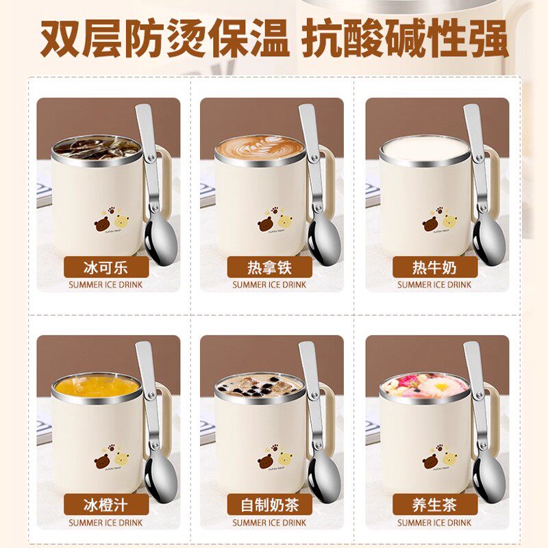 304不锈钢杯子带盖马克杯带勺办公室水杯泡茶杯咖啡杯保温杯女生