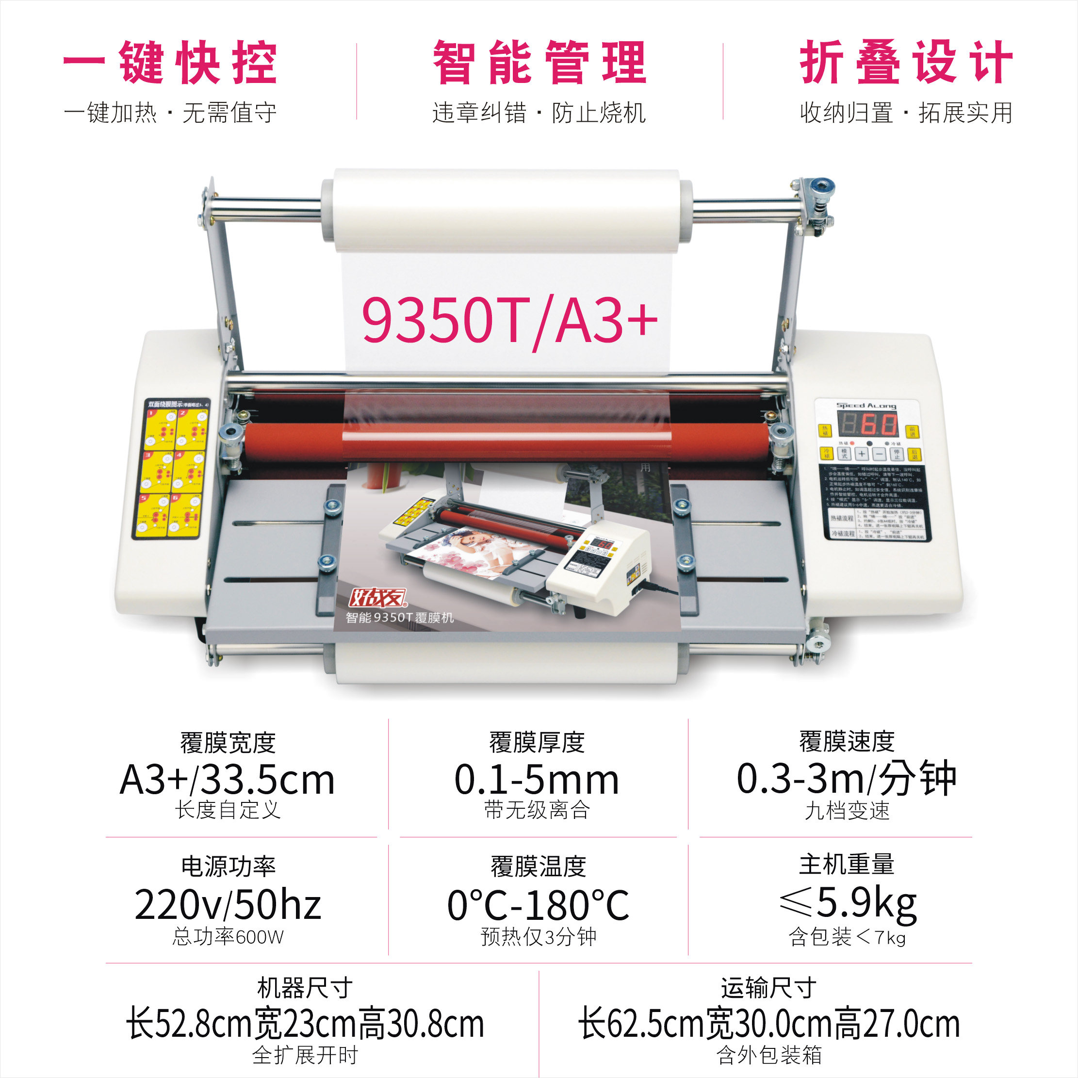 智能数控调速覆膜机大A3+好战友9350T冷裱机热裱机9230T A4+塑封机9460T A2+四辊单双面写真广告相片