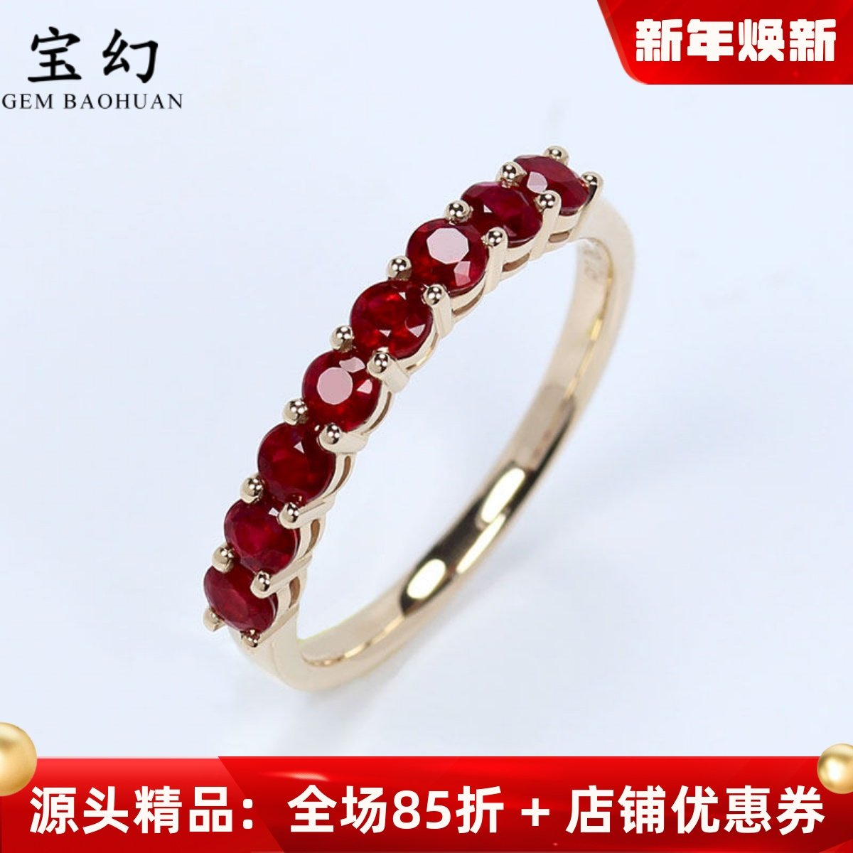 宽2.7mm天然鸽血红宝石排戒 18K玫瑰金群镶正红色女戒指简约舒适