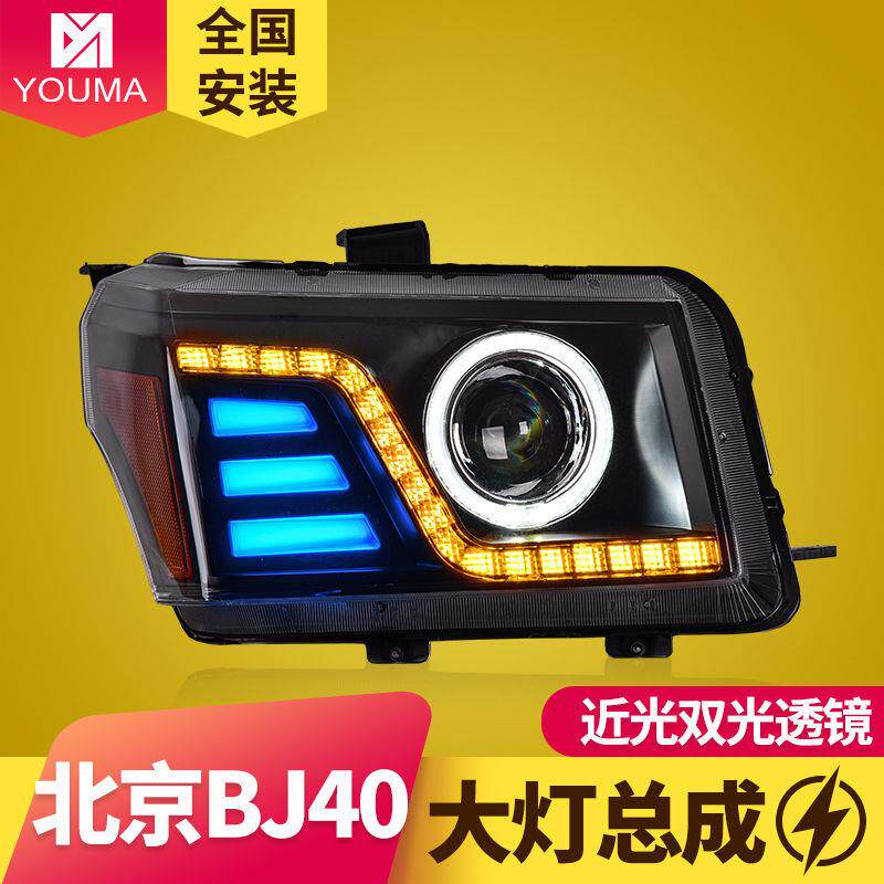 专用于北京BJ40大灯总成改装LED日行灯流水转向灯天使眼LED大灯