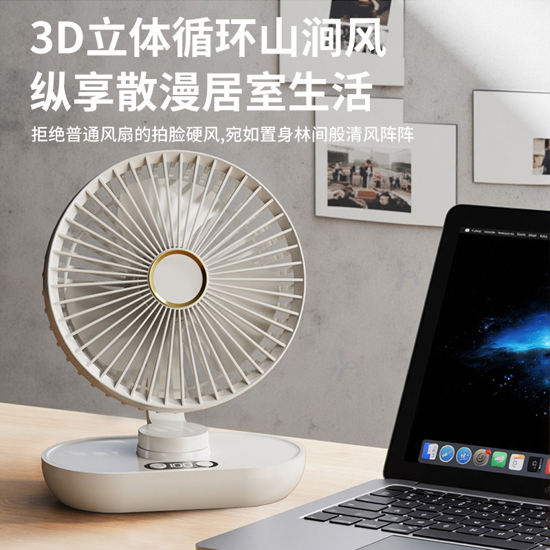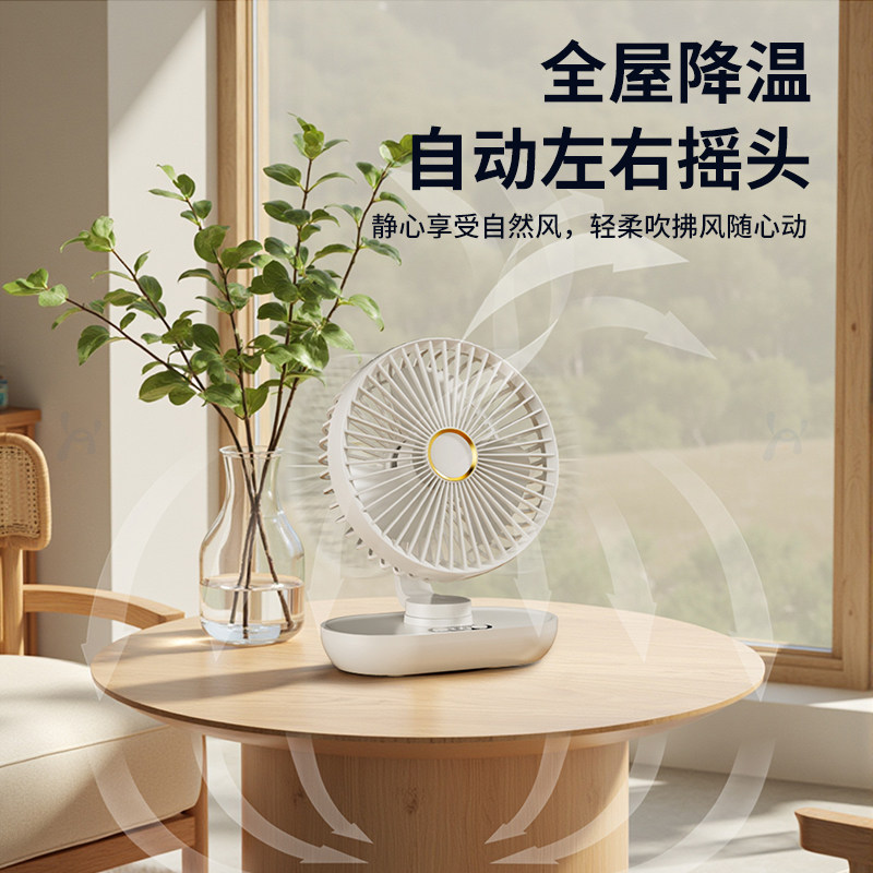 摇头桌面小风扇静音办公室桌上usb充电风扇迷你小型宿舍学生床上家用工位大风力超长续航台式制冷降温神器