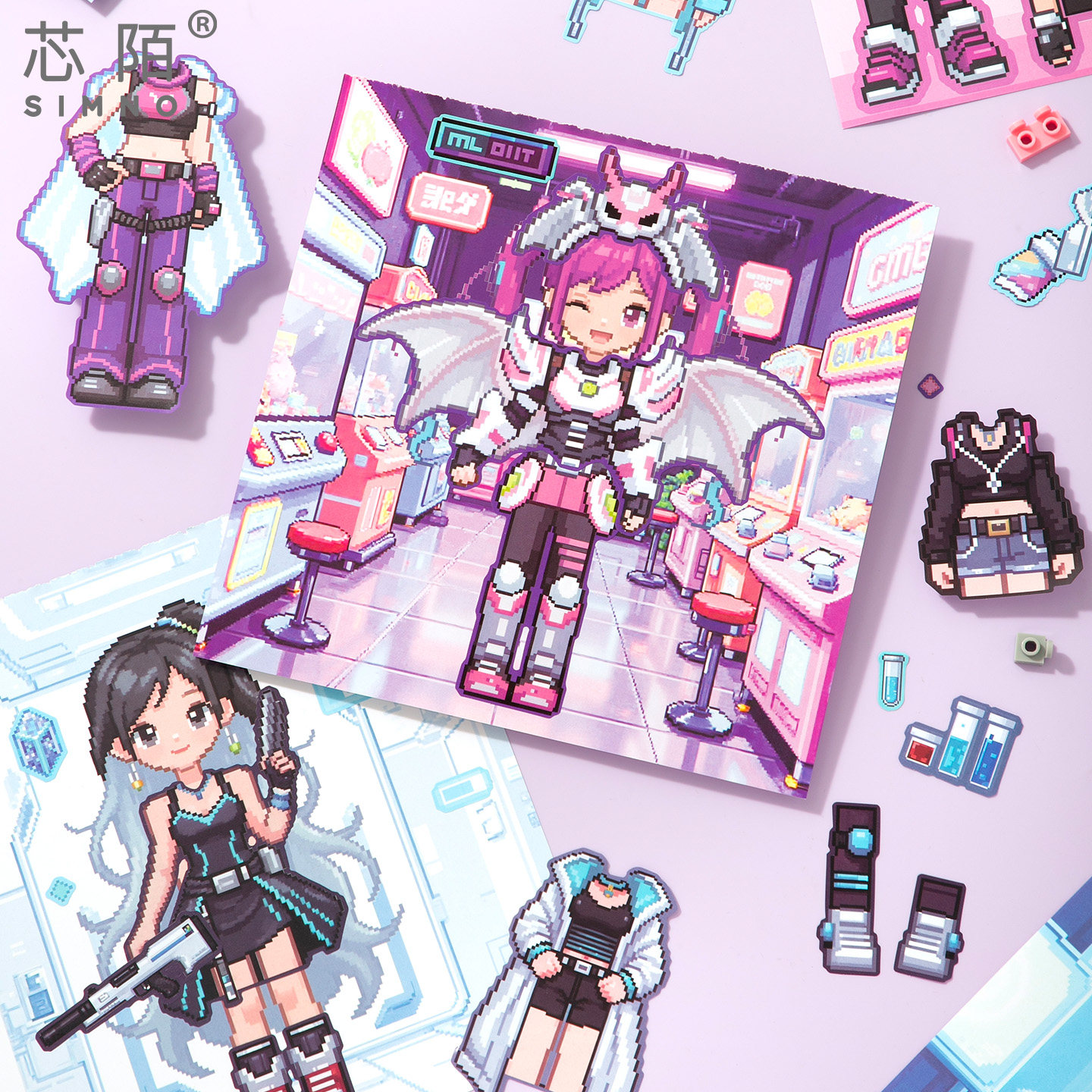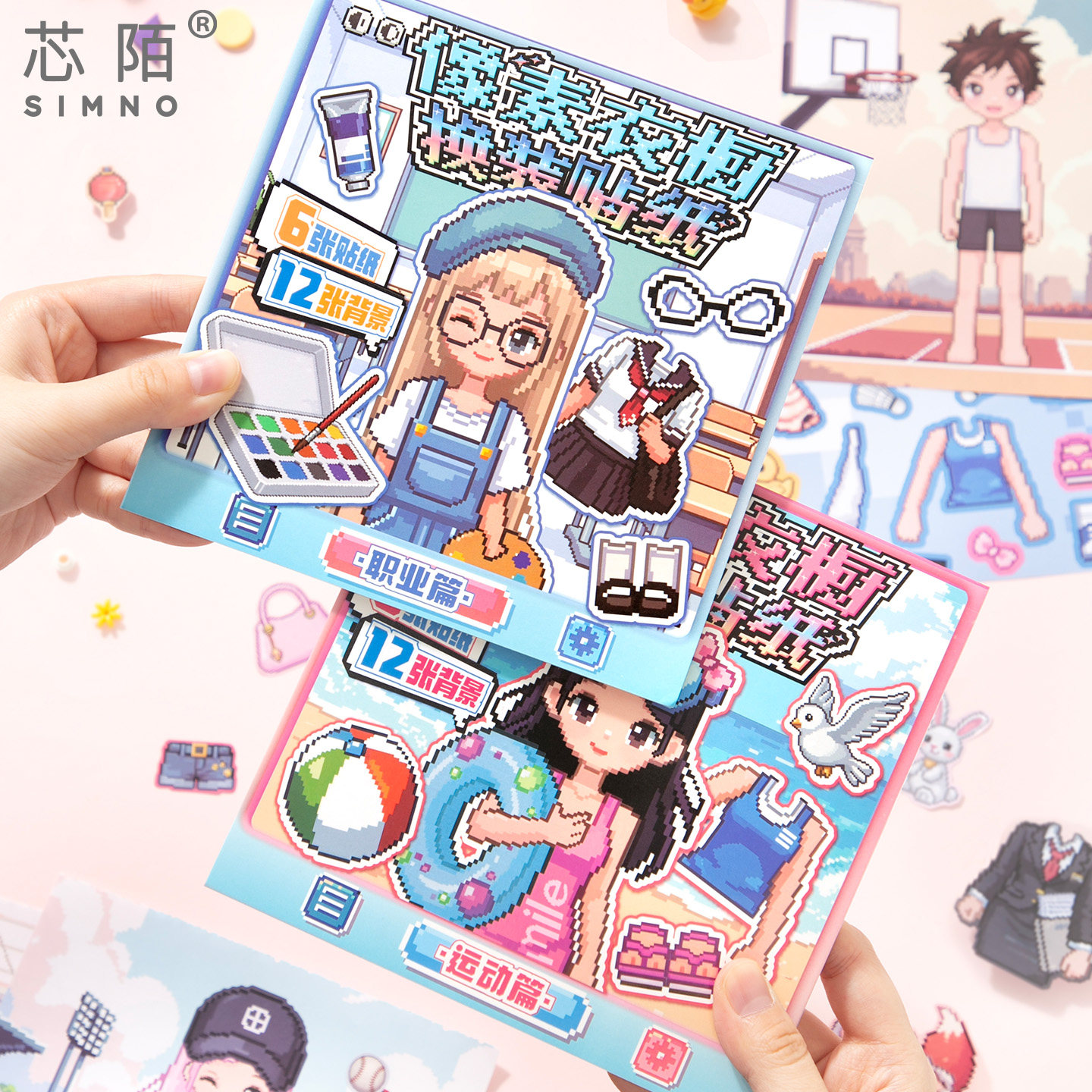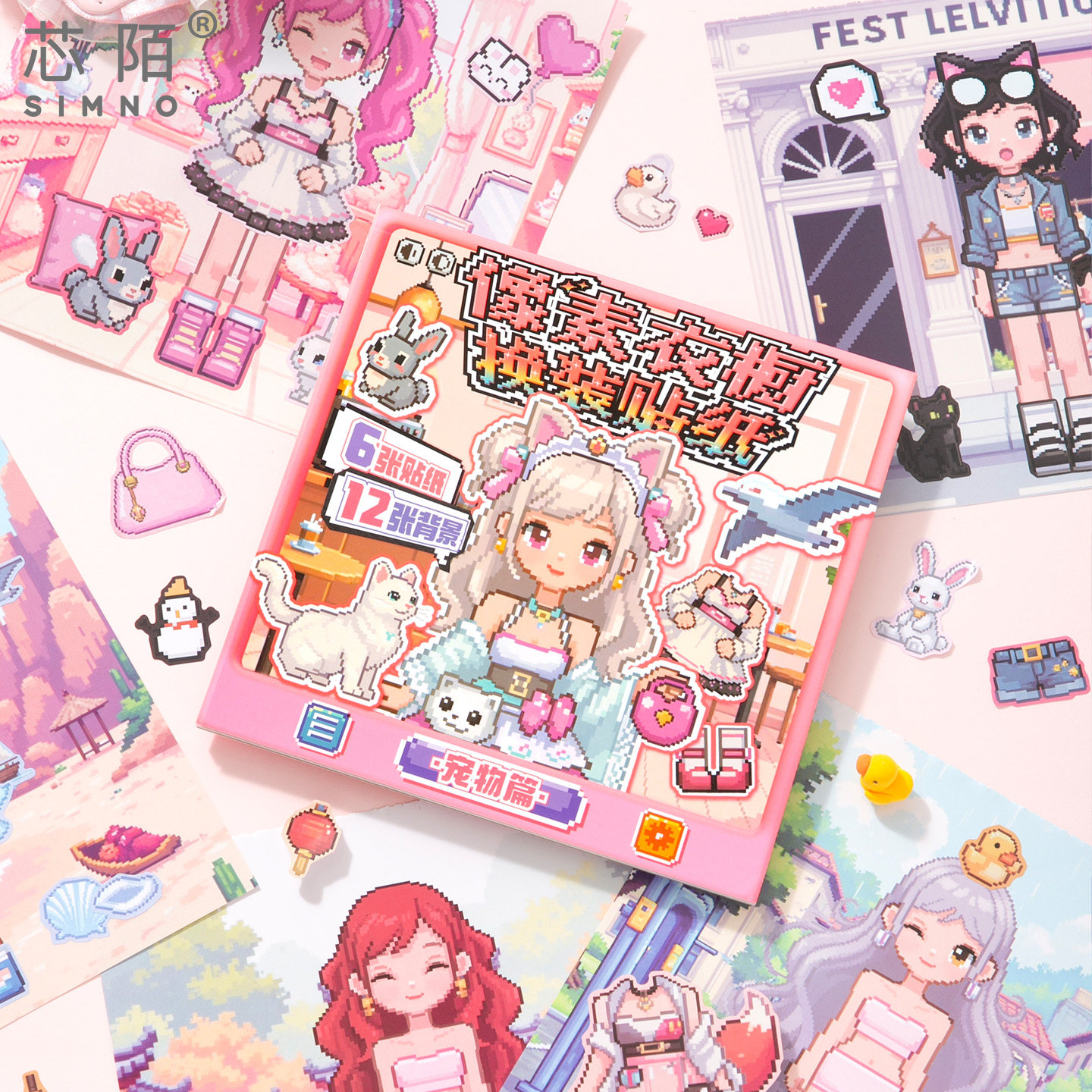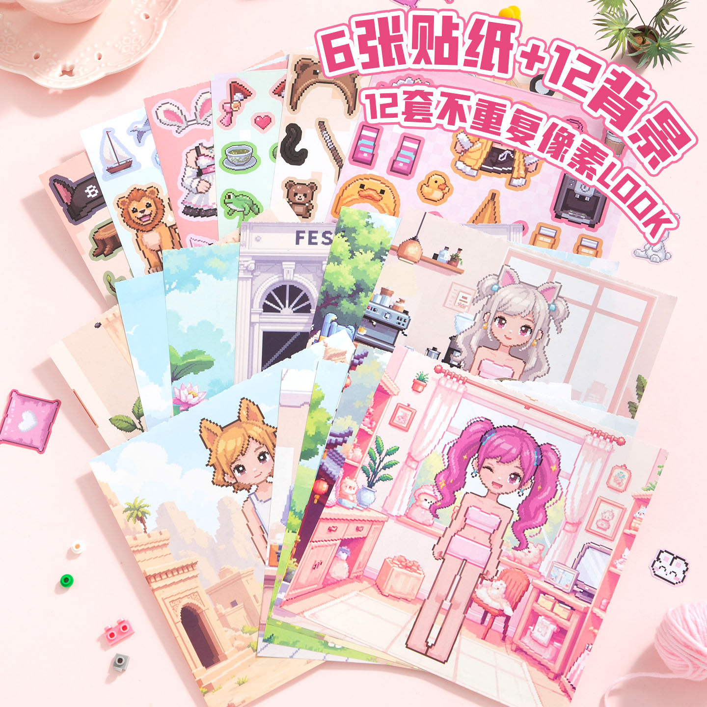 芯陌像素风衣橱换装贴纸本可爱卡通小公主免裁剪儿童益智手工安静书卡通人物衣服古风手帐贴画少女心装饰麻薯