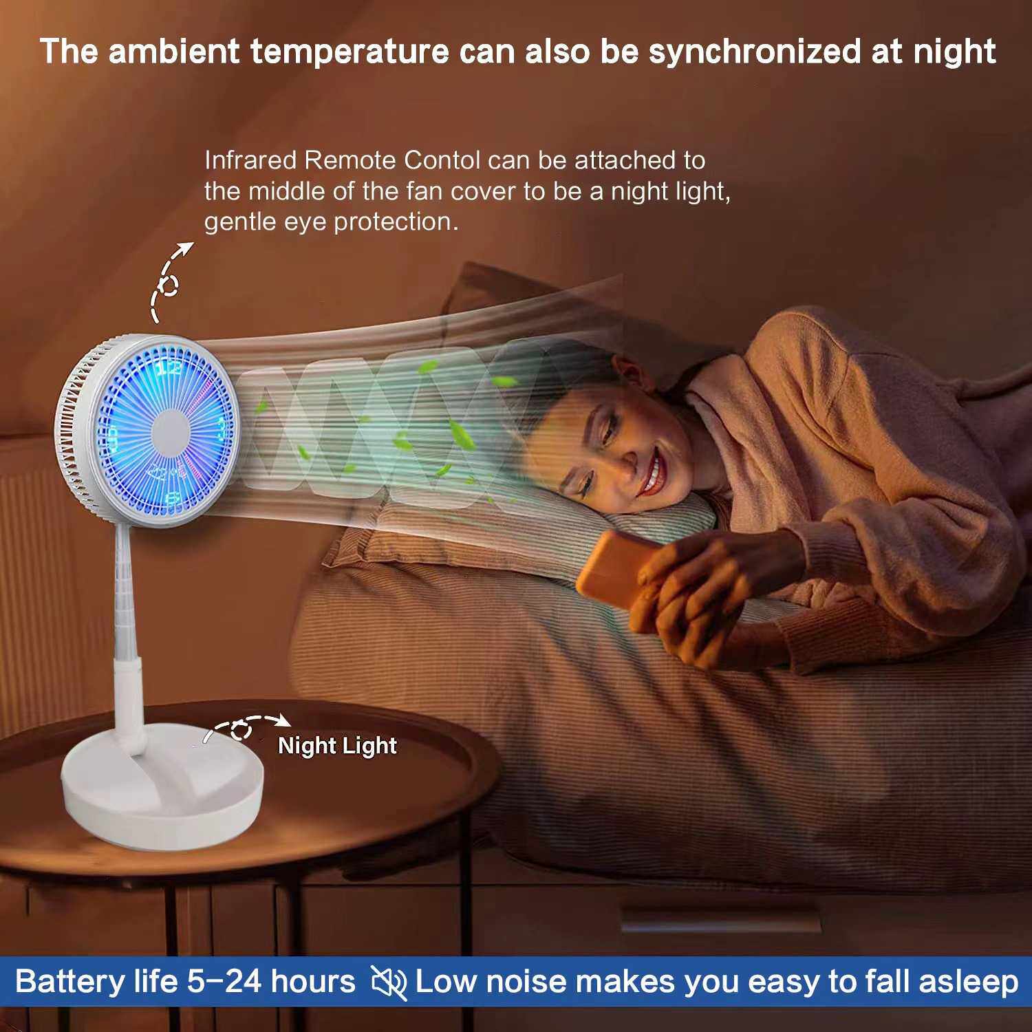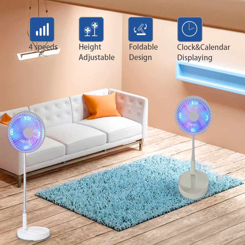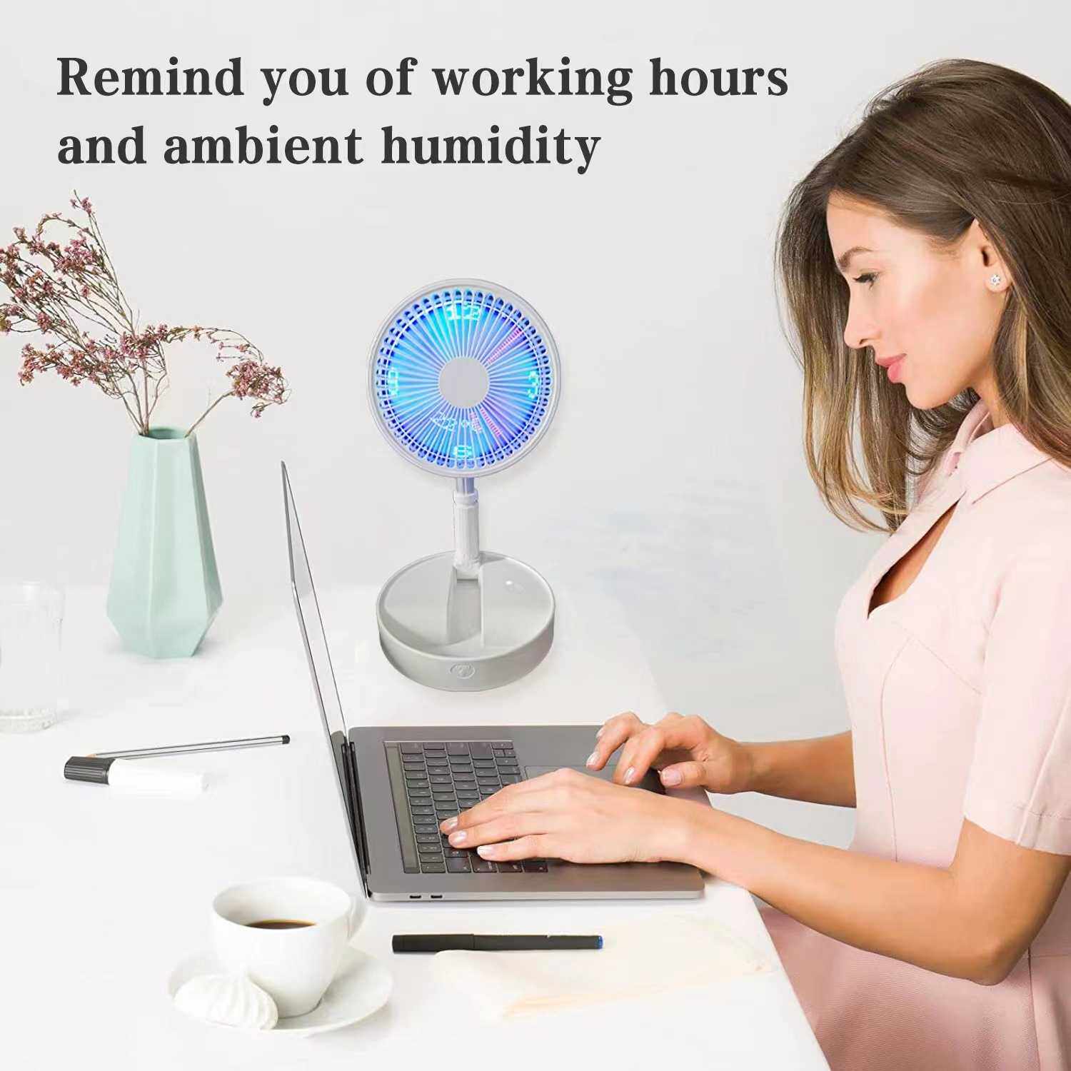 新款跨境露营风扇便携式折叠闪字时钟温度落地台式办公家用风扇