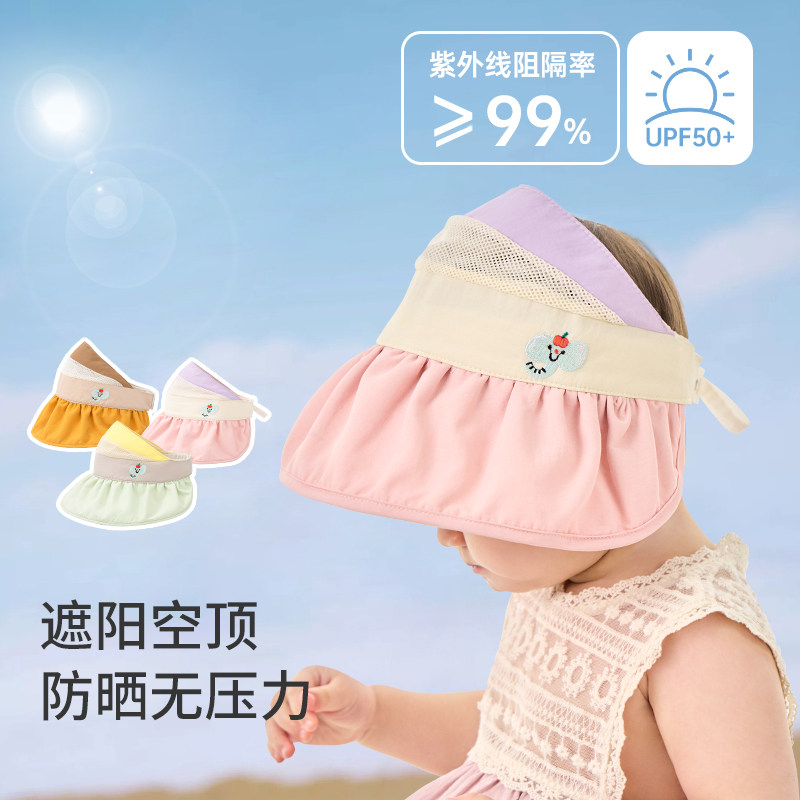 宝宝防晒帽儿童帽子夏季薄款遮阳帽女婴儿户外空顶防紫外线太阳帽