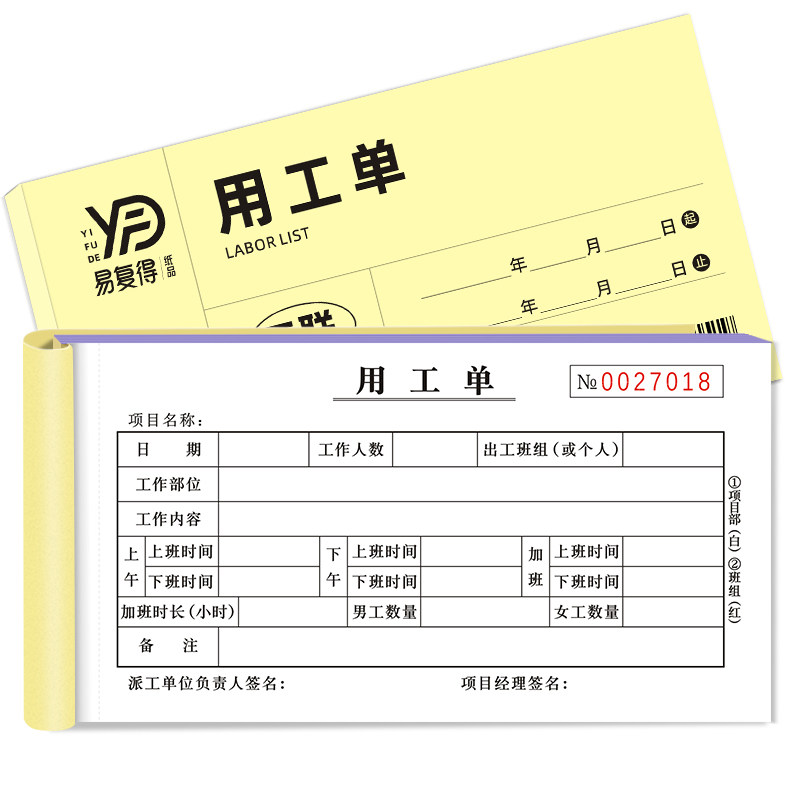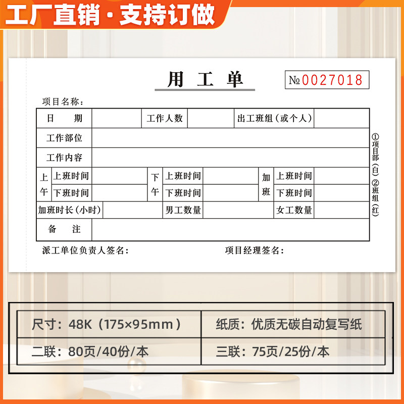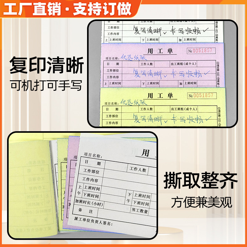 用工单二联临时用工单三联建筑工地计时工签工单现场派工单确认单