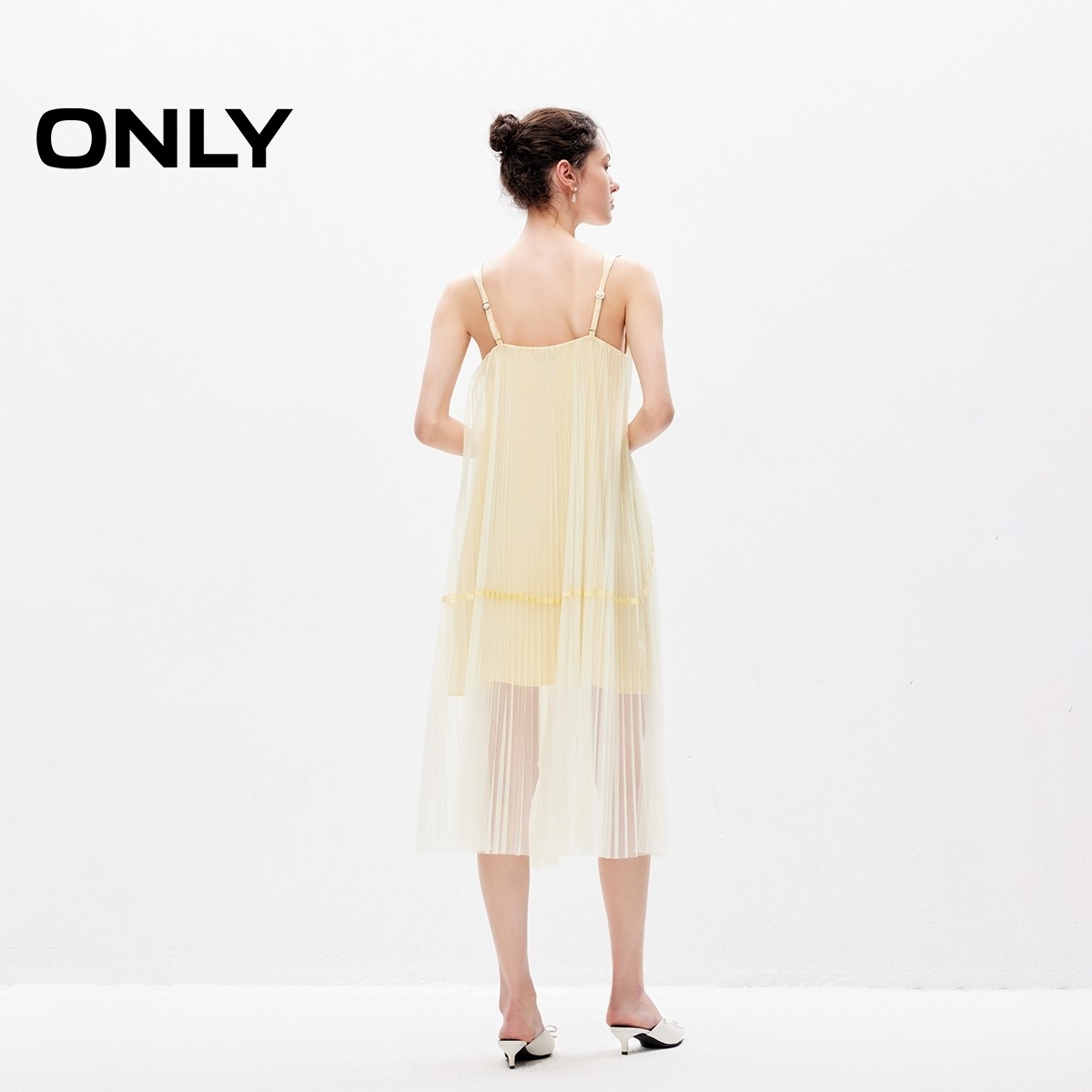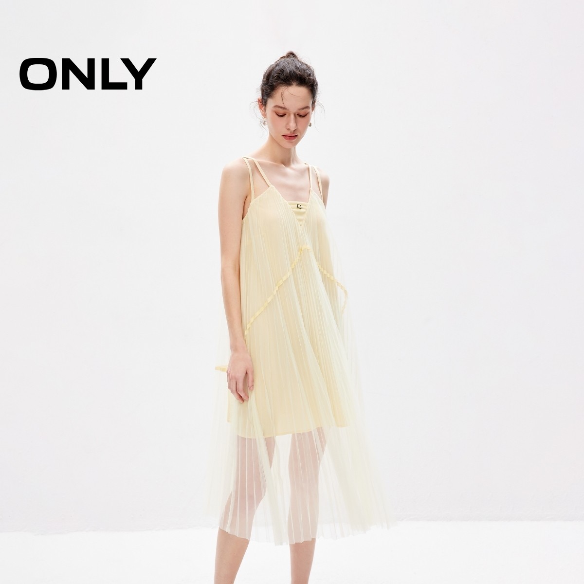 【ONLY奥莱】春夏新款时尚飘逸拼接百褶中长款吊带连衣裙女