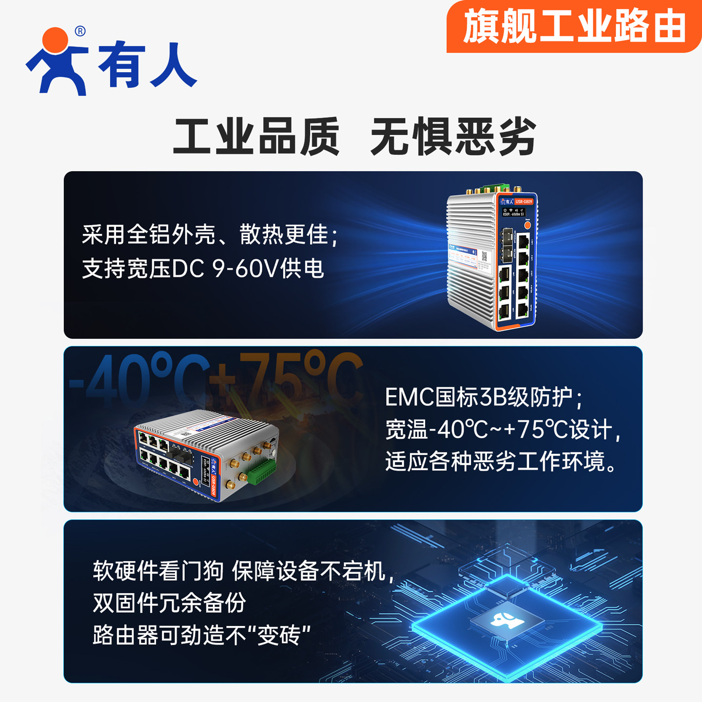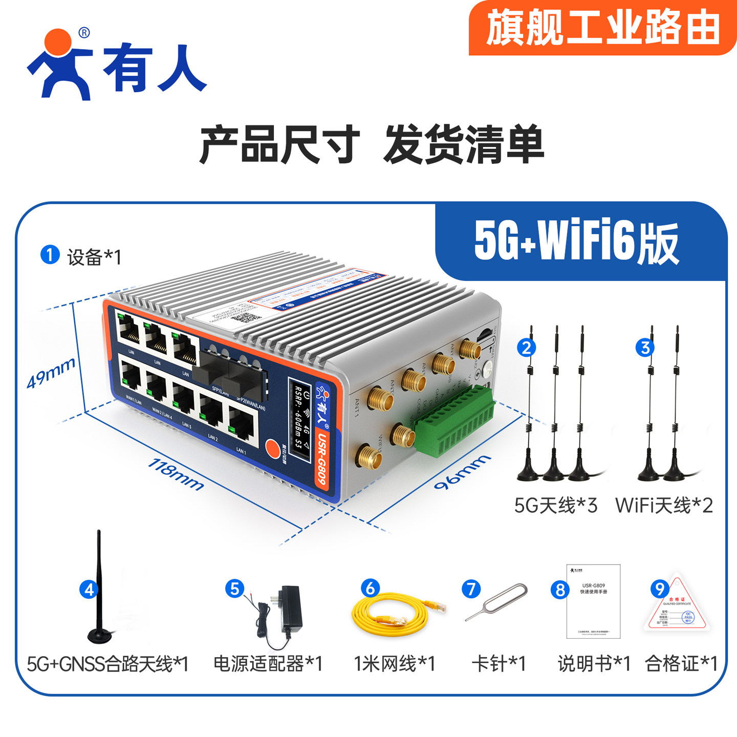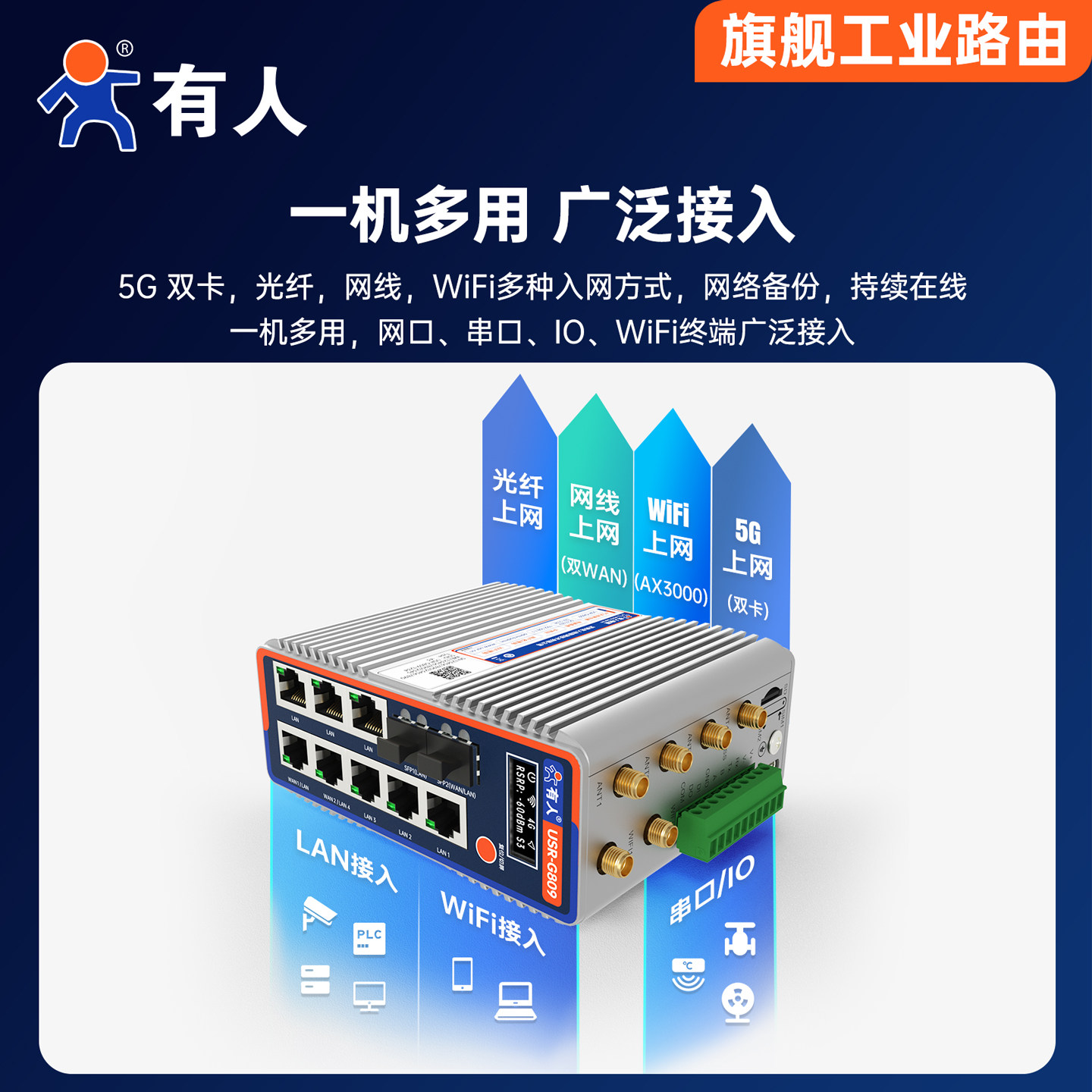 有人4G/5G工业路由器WiFi6插卡无线千兆边缘计算全网通多网口485/232串口sdwan异地组网储能连锁门店G809旗舰