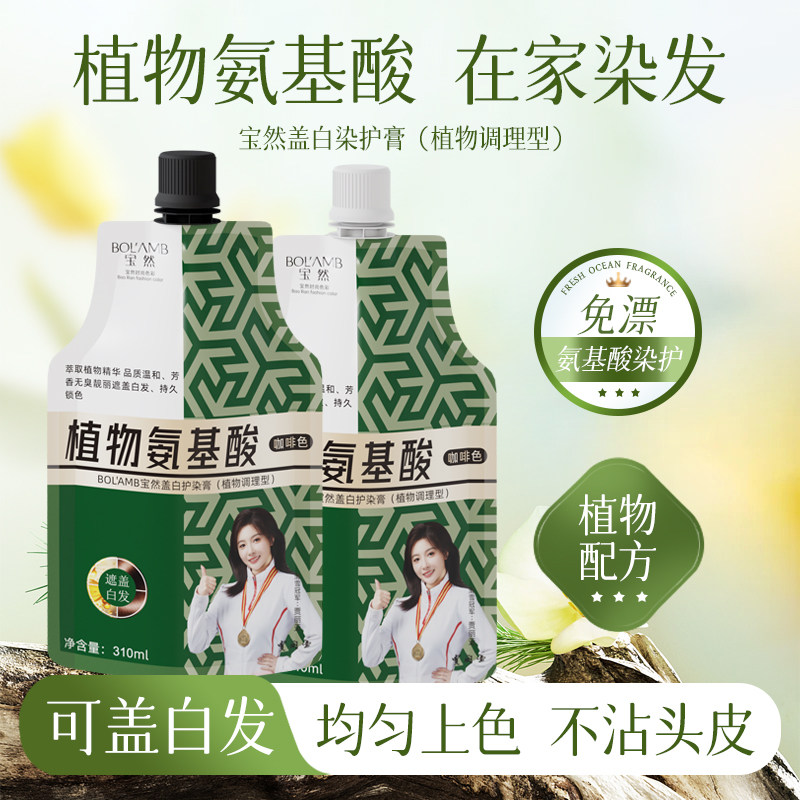 宝然植物氨基酸染发膏自己染发剂女显白流行色伦敦咖啡盖白发棕色