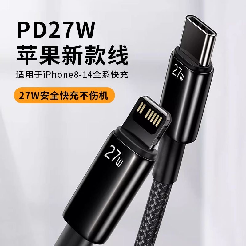 费慕适用苹果数据线快充PD27W线iPhone8/x/xr/11/13/14/12/xs/max pro手机USB快充车载编织线加长耐用