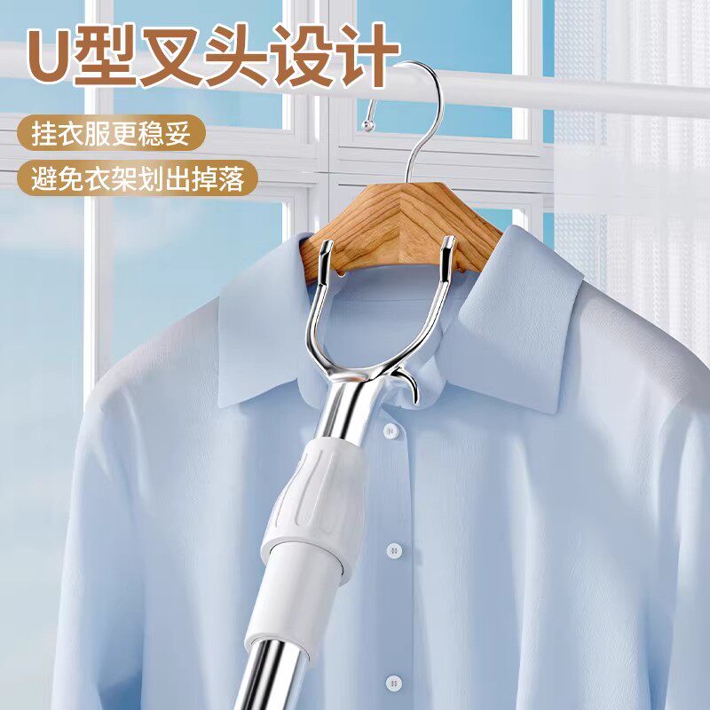撑衣杆家用不锈钢伸缩晾衣杆叉丫晒衣服的衣架杆子晾取挑衣叉挂衣