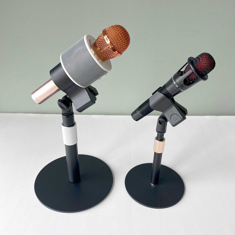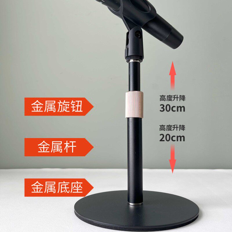 金属桌面麦克风支架直播唱歌电容麦通用升降台式加重圆盘话筒支架