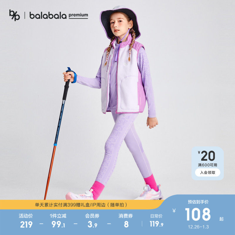 巴拉巴拉童装儿童套装女童春秋山野徒步系列速干排汗舒适打底套装
